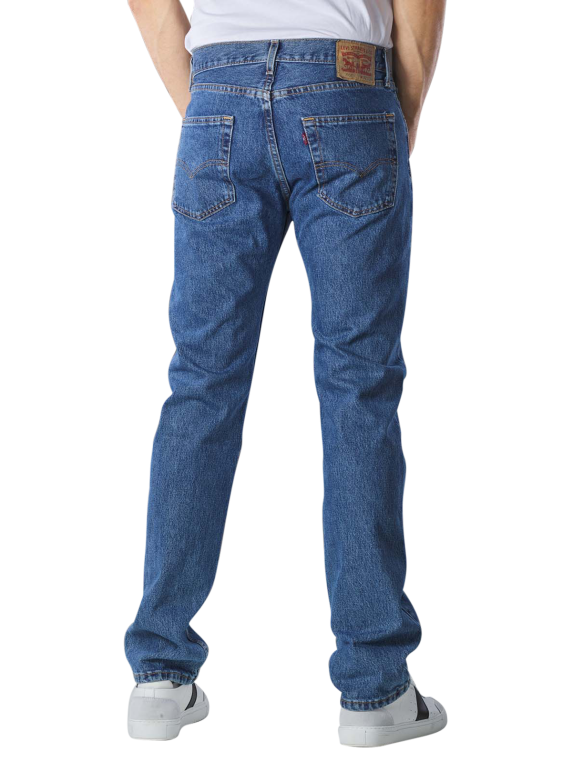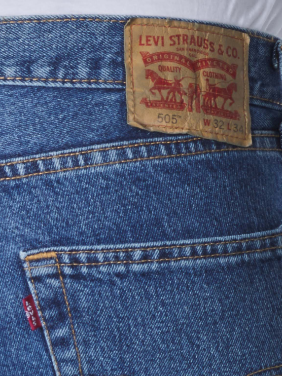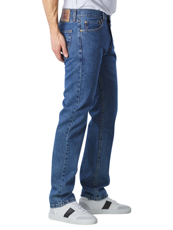 The Levi's 505 jeans in stonewash for men offer a classic fit with a straight leg and mid-rise waistband. Made from thicker, 100% cotton fabric, these jeans impress with their robust quality without stretch. The timeless five-pocket style is complemented by a practical zip fastening. The light to medium blue wash gives them a casual look, ideal for everyday wear. Easy-care at 30°C on a normal wash cycle, do not bleach.