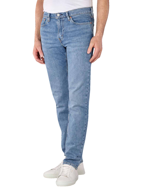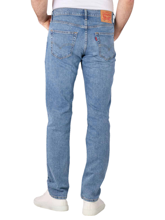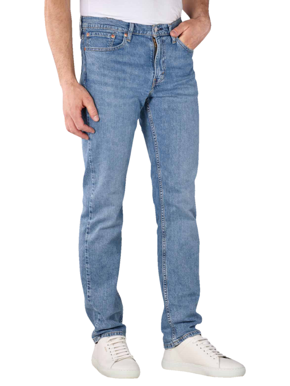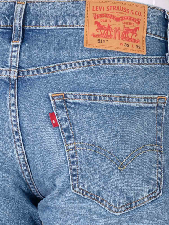 The Levi's 511 slim fit jeans are slim and straight cut in cotton with a small amount of elastane. They are suitable for the washing machine and tumble dryer and are characterised by a slightly used look. They have a medium rise and a classic 5-pocket style. The back pockets feature the typical double decorative stitching in subtle contrasting colours. The label logo is printed in bright red on cognac-coloured leather.