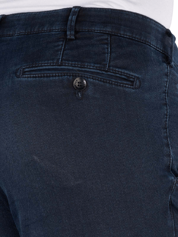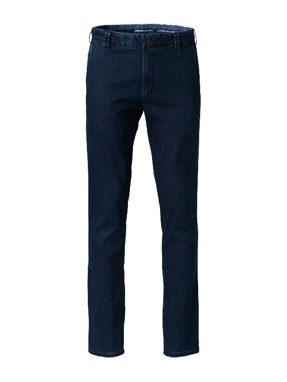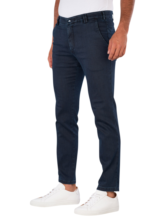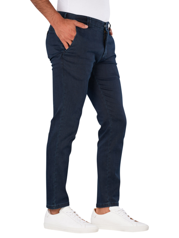 The Meyer Bonn Denim Chino in Dark Blue offers a modern slim fit with a mid-rise waist and straight leg cut. It is versatile, ideal for leisure and office. The stretch content ensures high wearing comfort and freedom of movement. The chino is easy to care for and can be washed at 40°C in a normal wash cycle. A timeless piece of clothing for the fashion-conscious man.