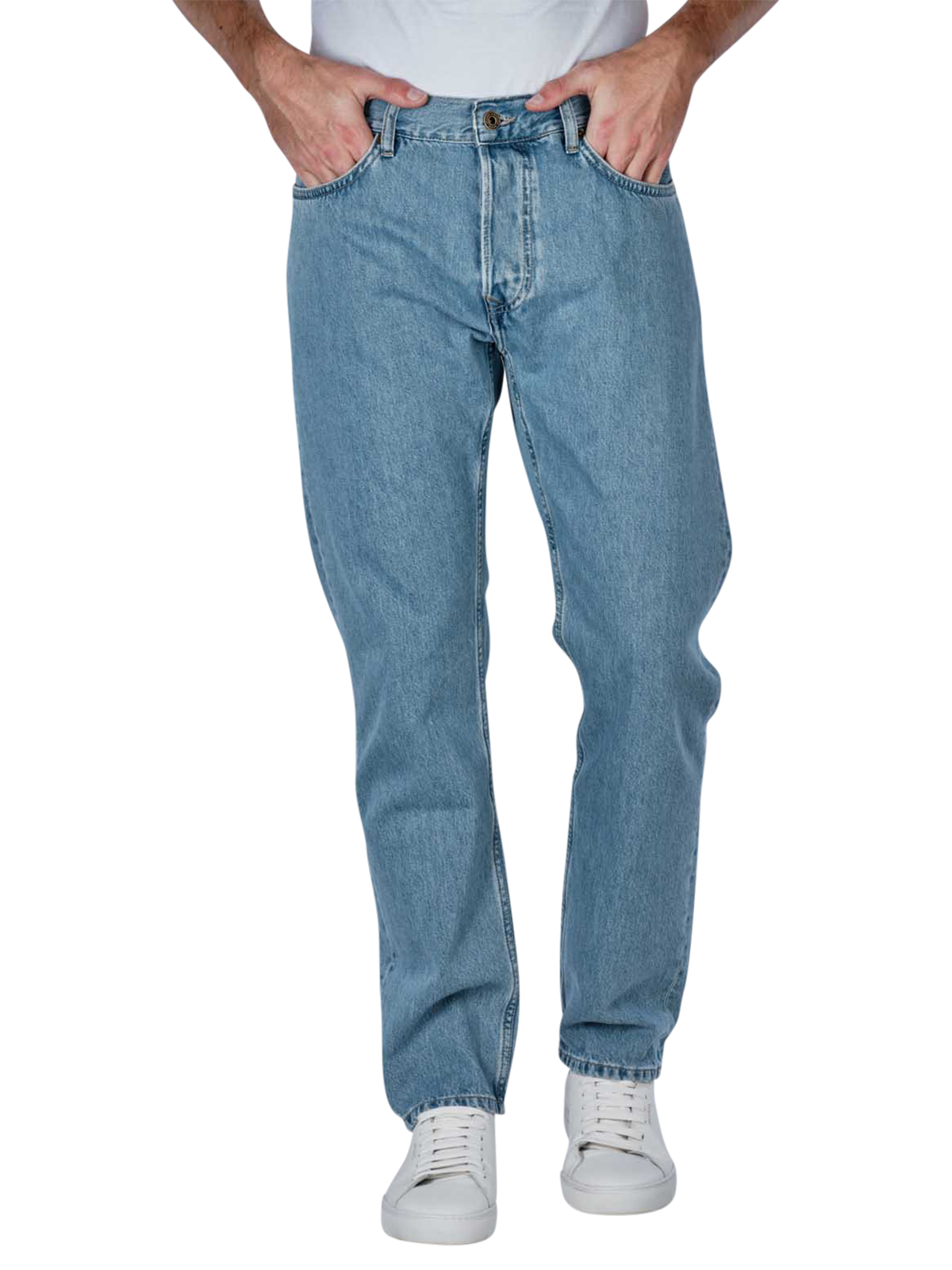 The Pepe Jeans Byron in light blue is a stylish choice for men. With their straight leg cut and mid-rise waist, they create a classic look. These jeans are made from 100% cotton, so they have no stretch and are characterised by a light wash. They have a practical five-pocket design and fasten with a button fly. Suitable for a normal wash cycle at 40°C, they combine comfort with style.
