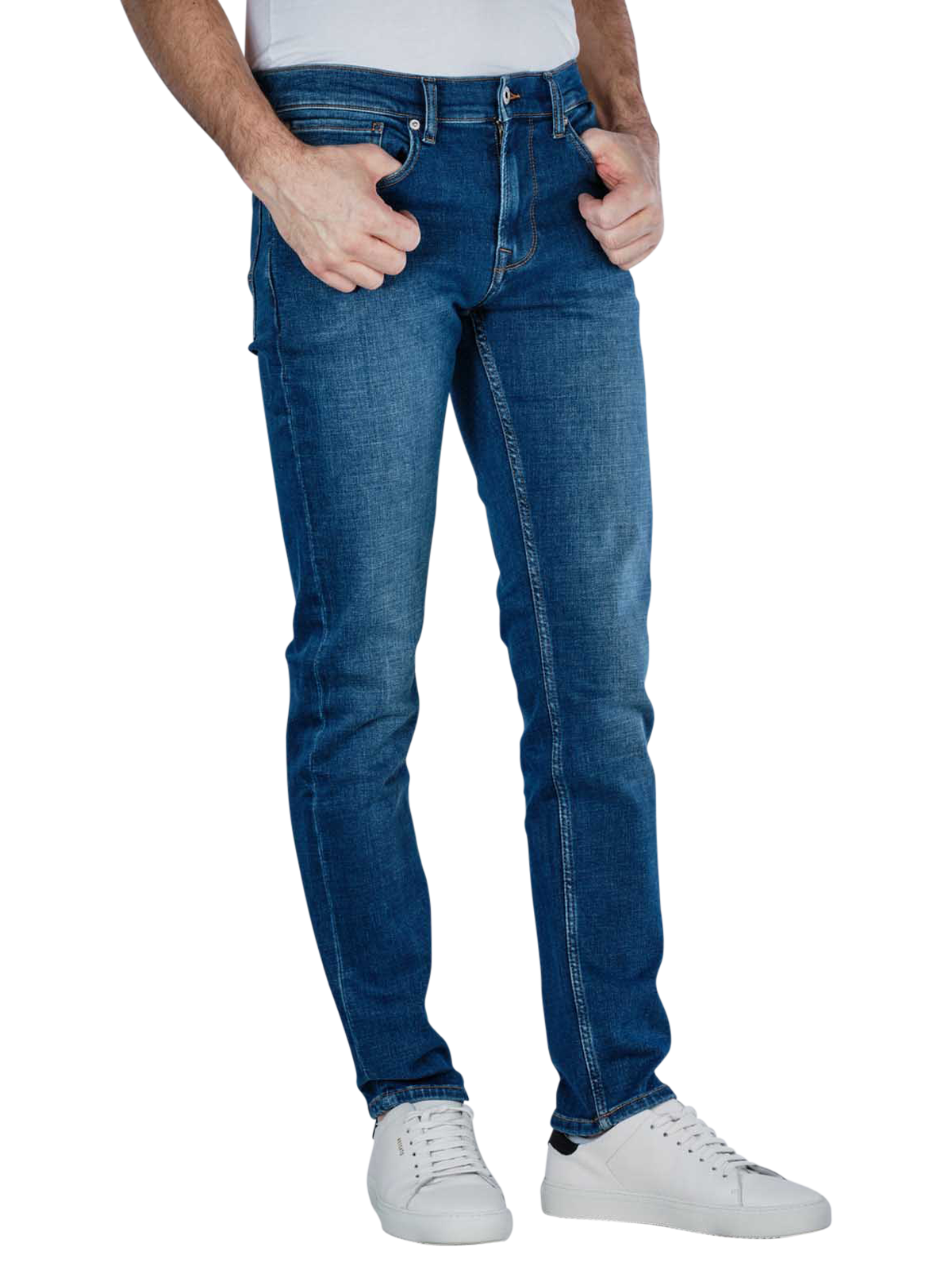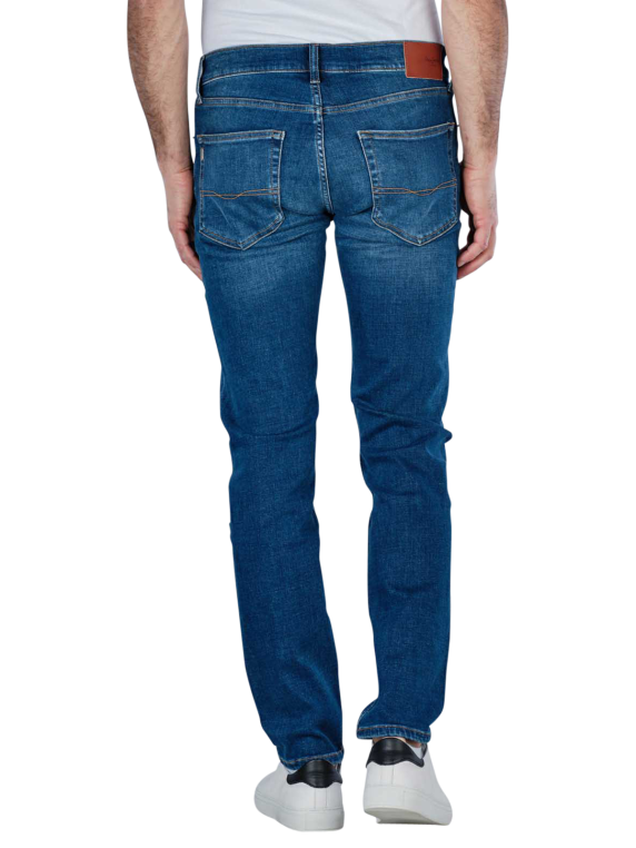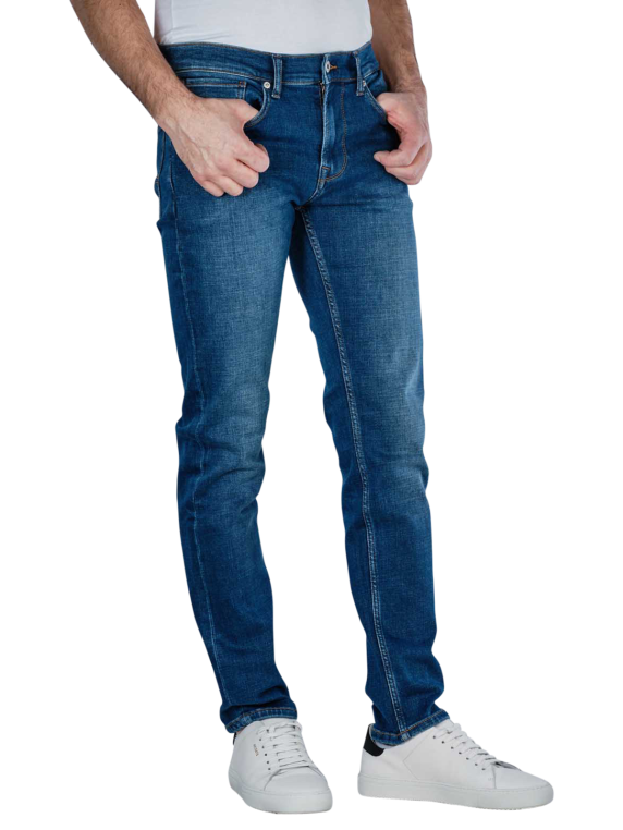 The Pepe Jeans Hatch Slim in a medium blue colour are stylish men's jeans with a narrow/straight leg cut and a low waist. These slim fit jeans are comfortable to wear thanks to their stretch content and are made from 83% cotton, 12% modal, 4% T400 and 1% elastane. They have a zip fastening and are designed in a five-pocket style. The jeans have a medium wash and can be washed at 40°C on a normal cycle.