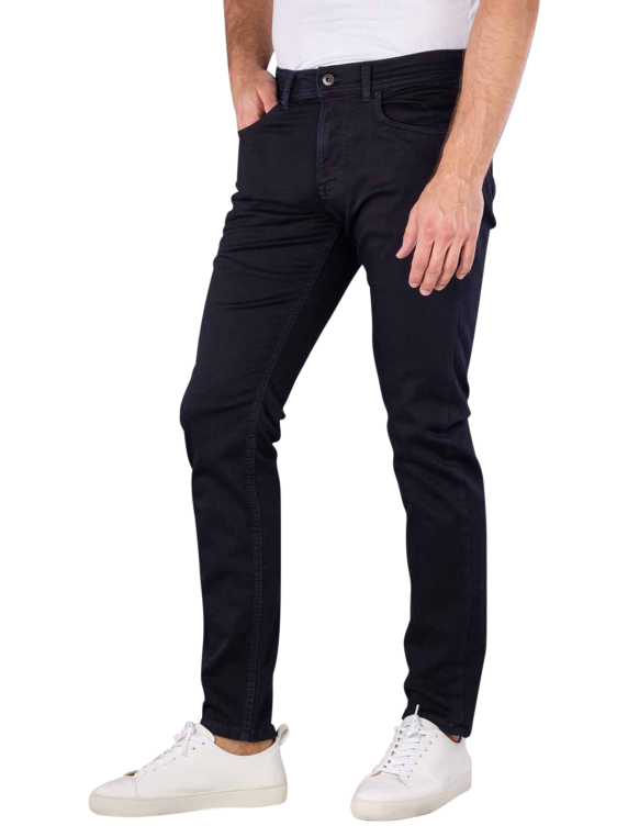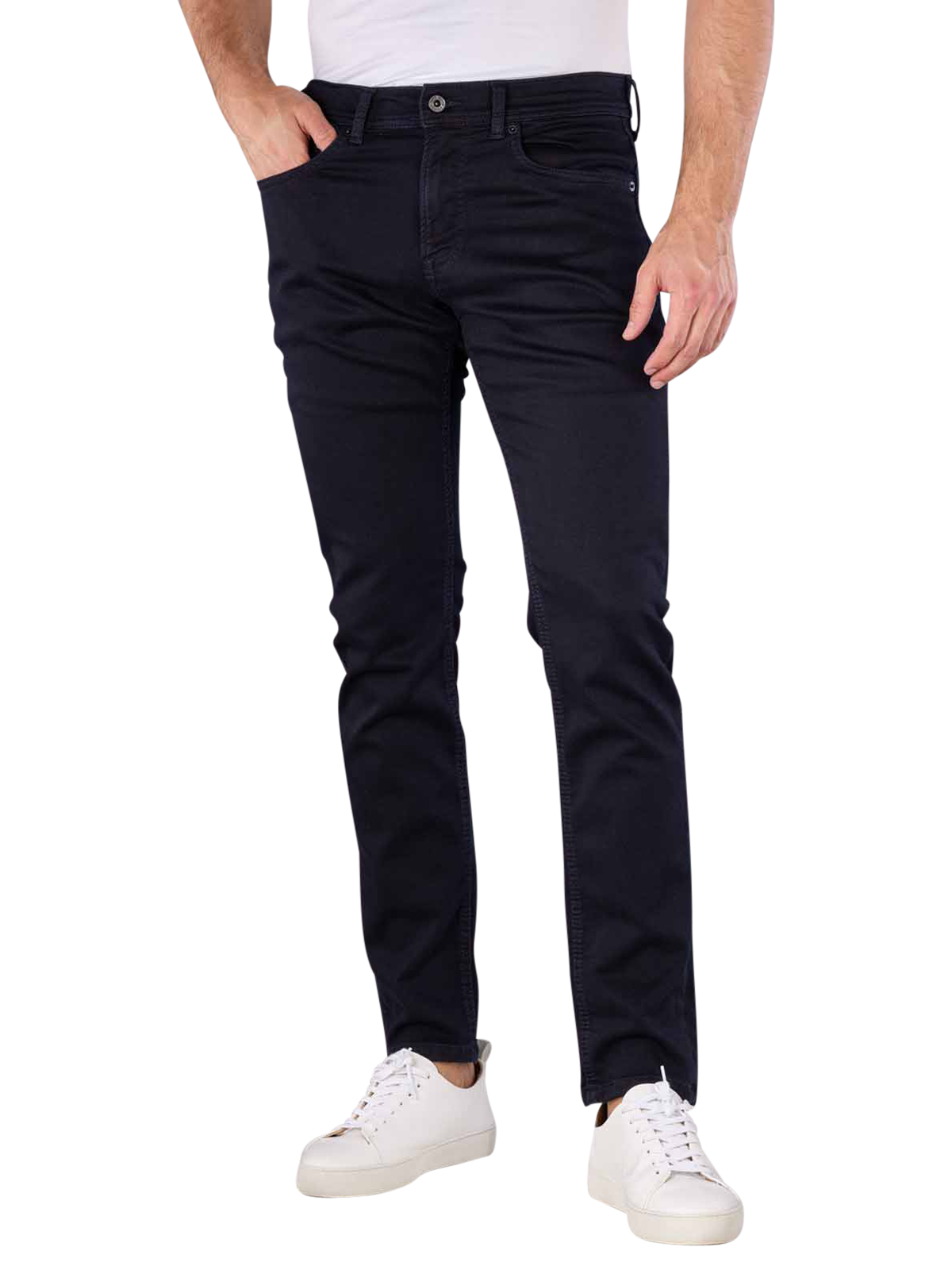 These men's jeans from Pepe Jeans in the color Dark Blue are a five-pocket pair in a casual style. The jeans are cut in a slim fit, have a medium rise, and a straight leg opening. This jeans is made from 72% cotton from the Pepe Future program, 14% viscose, 12% polyester, and 2% elastane, which also gives it a stretch component. It can be comfortably washed at 30 degrees in a normal wash cycle.