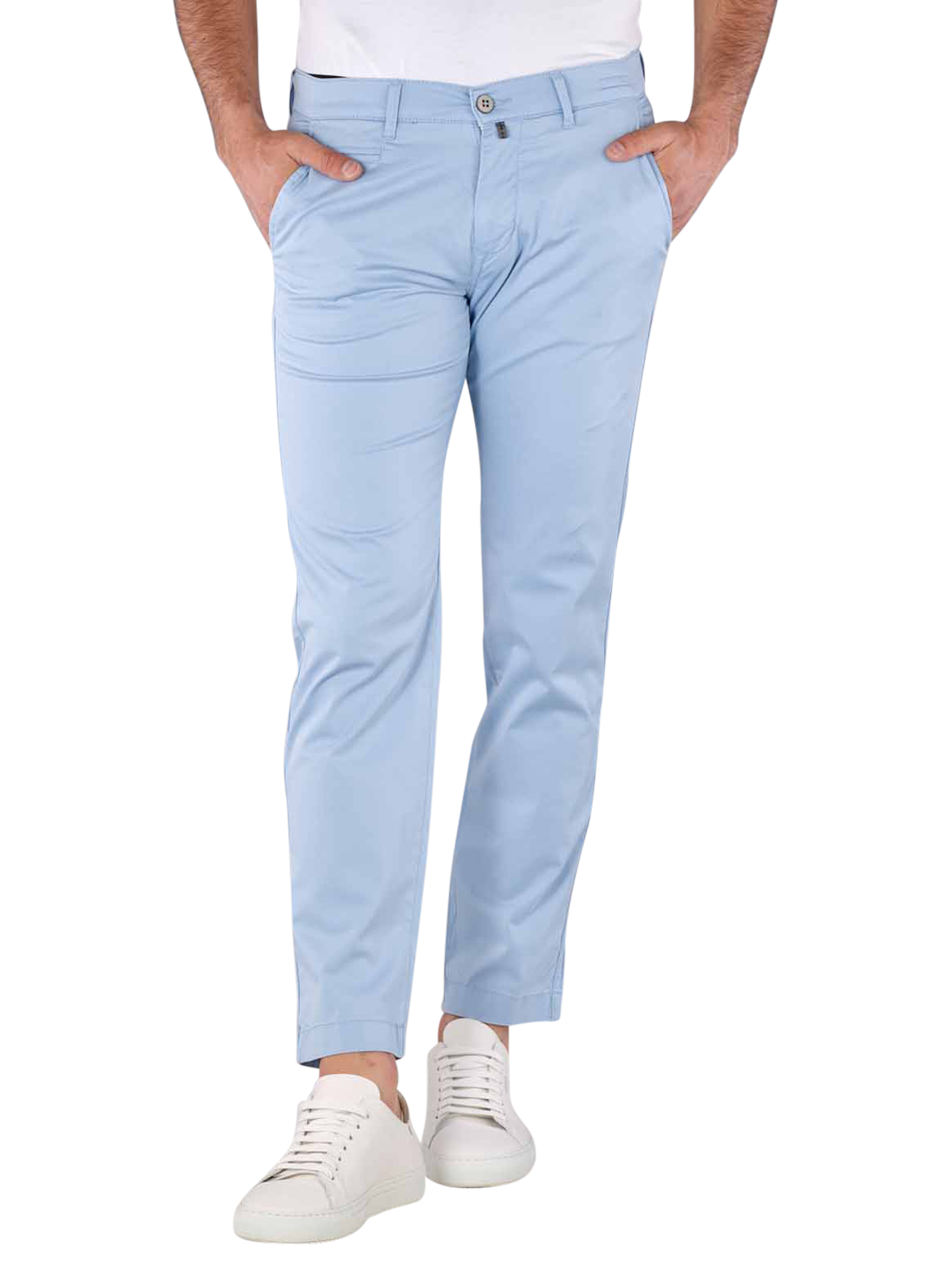 Perfect for summer: Pierre Cardin's Light Weight Lyon Pant is made from a fine stretch fabric with 97% breathable cotton and 3% elastane. The men's model comes in a Blue Bell colour, has a five-pocket design and closes with a button and zip. The Tapered Fit has a mid to low rise, straight thighs and narrow, straight legs.