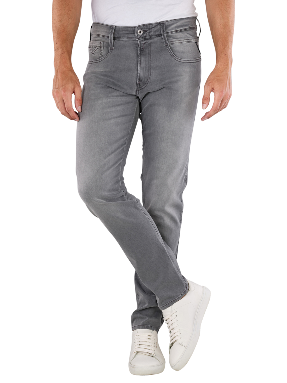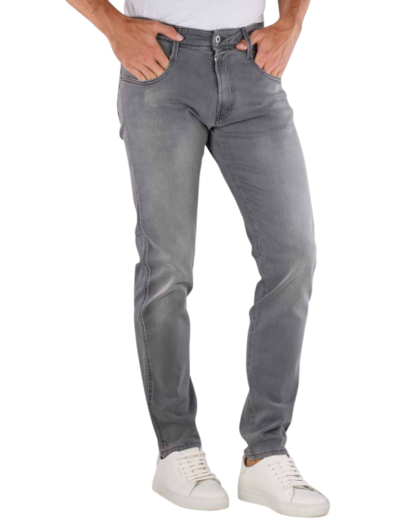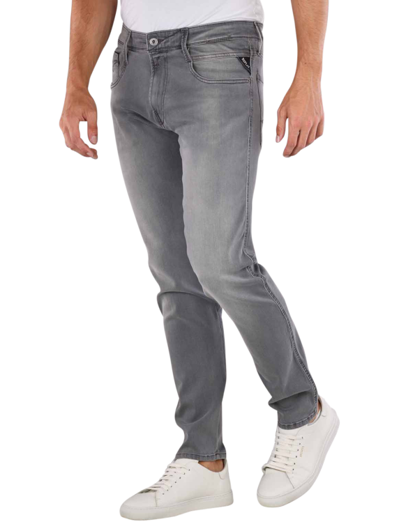 The Replay Anbass slim fit jeans in grey offer a modern fit with a close-fitting leg and a mid-rise waist. Perfect for men, they combine standard thickness with a comfortable amount of stretch. The five-pocket jeans close with a zip and stand out with their grey wash. Care instructions: Gentle wash cycle at 30 degrees, do not bleach. Material composition: 98% cotton, 2% elastane. Ideal for stylish and comfortable outfits.