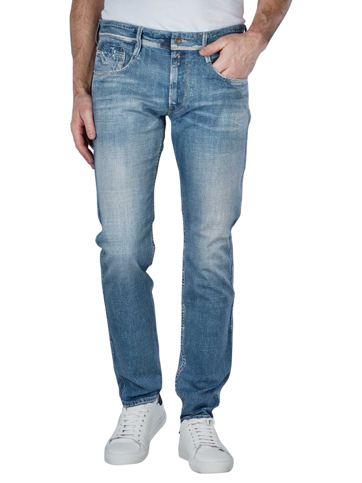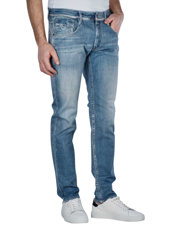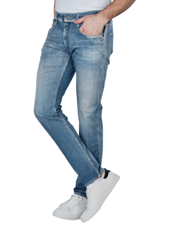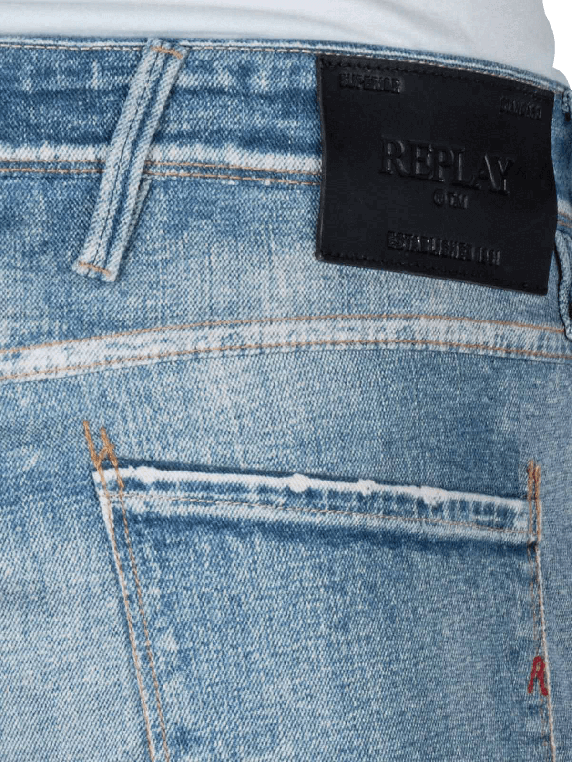 The Replay Anbass jeans in slim fit light blue for men impress with their slim fit and fashionable, light-coloured wash. The mid-rise waistband ensures optimum comfort, while the stretch content offers freedom of movement. With a classic five-pocket design and practical zip fastening, these jeans are a versatile companion. Made from 98% cotton and 2% elastane, a gentle wash cycle at 30°C is recommended. Bleaching is not recommended. Perfect for fashion-conscious men.