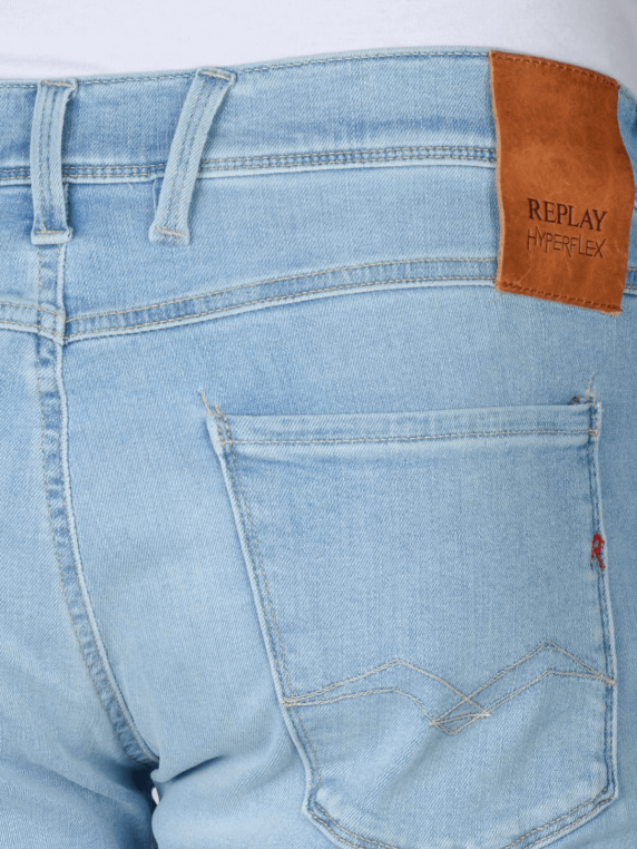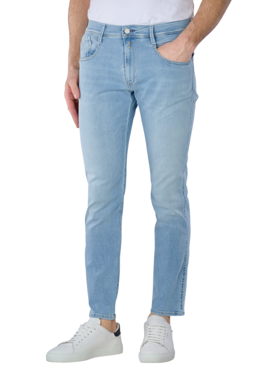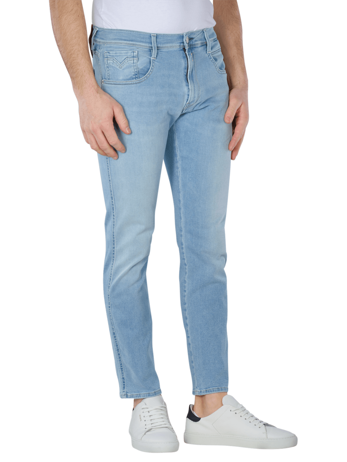 Discover the Replay Anbass Slim Fit Jeans in Light Blue, the perfect choice for fashion-conscious men; with its slim leg cut and mid-rise waistband, it provides a modern, stylish look; the jeans feature a comfortable stretch for optimal wearing comfort and freedom of movement; the light wash gives it a casual touch; made from high-quality cotton, it is ideal for any occasion; easy to care for in a gentle wash cycle at 30°C, so it stays in top shape for a long time!