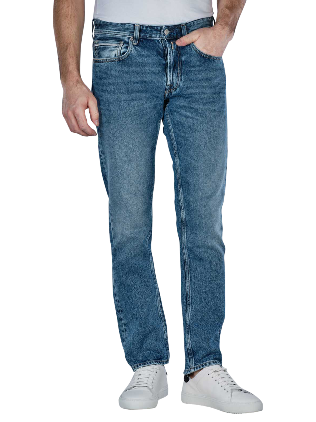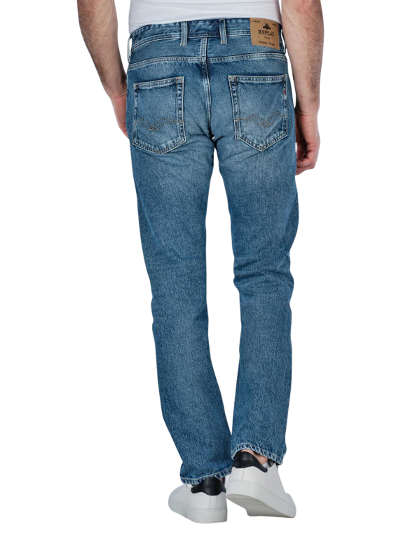 The Replay Grover jeans for men offer a timeless straight fit and come in a classic mid-blue colour. The jeans impress with their straight leg shape and a mid-rise waistband, which ensures a comfortable fit. Made from 100% cotton with no stretch, the trousers have a pleasantly firm fabric thickness. The classic five-pocket style and button placket give the jeans an authentic touch. Care instructions: Gentle wash cycle at 30°C.