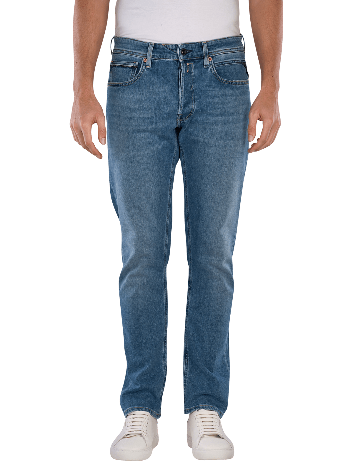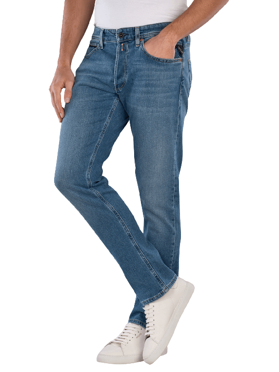 The Replay Grover Jeans Straight Fit Light Blue offers a straight fit with a mid-rise waist. It features a classic five-pocket style and a practical button fly closure. The stretch content provides freedom of movement and comfort. The medium wash gives the jeans a timeless look that can be combined in various ways. Easy to care for at 30°C in a normal wash cycle, it is a practical choice for the modern man.