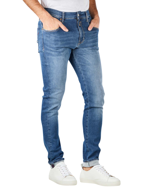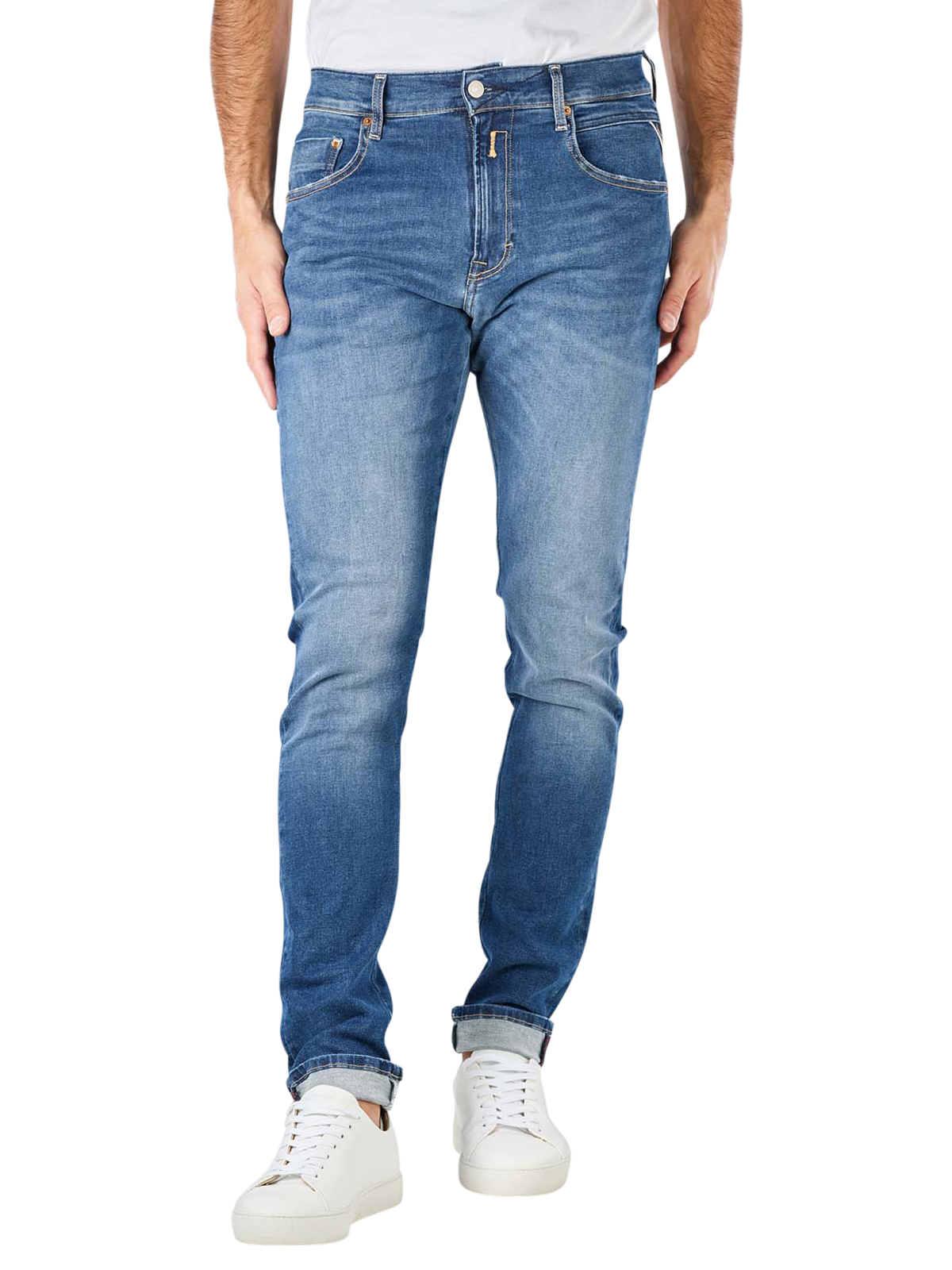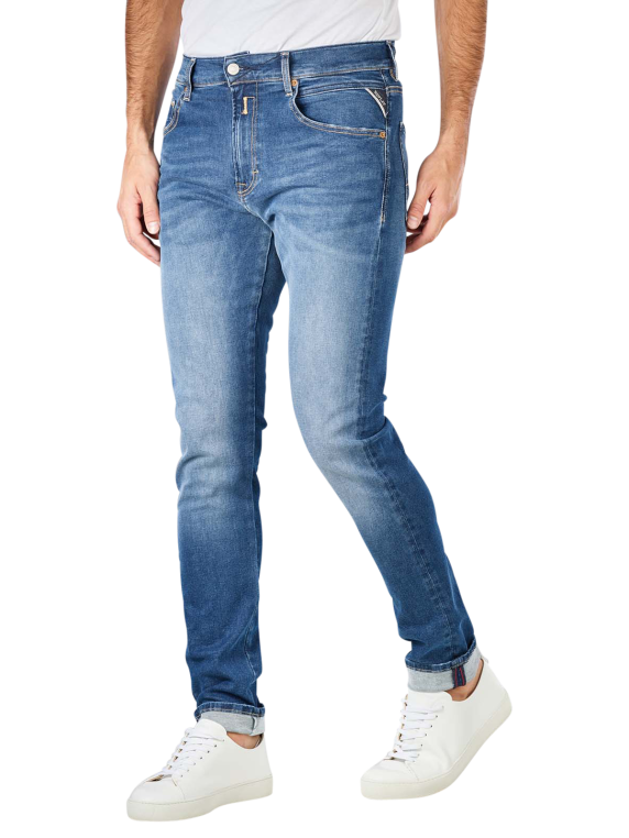 Replay's denim trousers feature a zip fly and button closure. This keeps the trousers in place and prevents them from slipping. The recycled fabric has a standard thickness. The stretch content in the trousers ensures that they fit comfortably. The normal wash cycle at 30 degrees in the washing machine is perfect for these jeans. They should be dried in the shade.