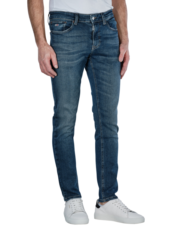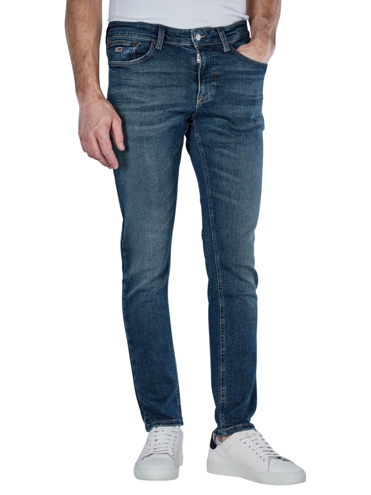 The Tommy Jeans Austin Slim Tapered Denim Dark are stylish jeans for men that are characterised by their narrow leg cut and mid-rise waist. The dark blue colour in combination with the medium wash gives the trousers a classic look. The jeans offer optimum comfort thanks to the stretch content, while the organic cotton ensures sustainability. The practical five-pocket style and zip fastening round off the design. Ideal for everyday wear.
