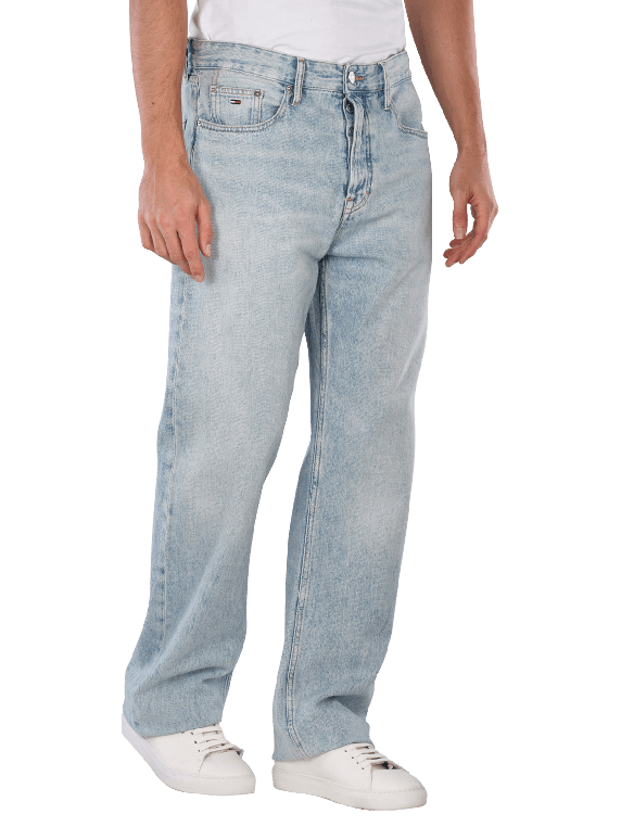 The Tommy Jeans Otis Regular Straight Fit Denim in light blue offers a straight fit with a mid-rise waist. This jeans is made of 100% cotton and has a thin fabric thickness, making it light and comfortable to wear. The classic five-pocket style and button fly provide functionality. The light wash gives the jeans a fresh look that is versatile to combine.