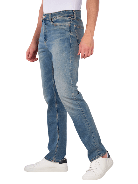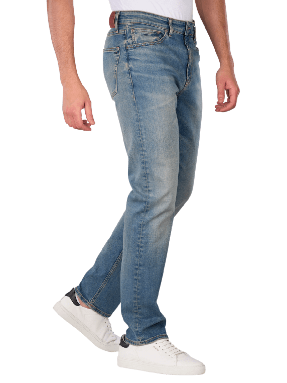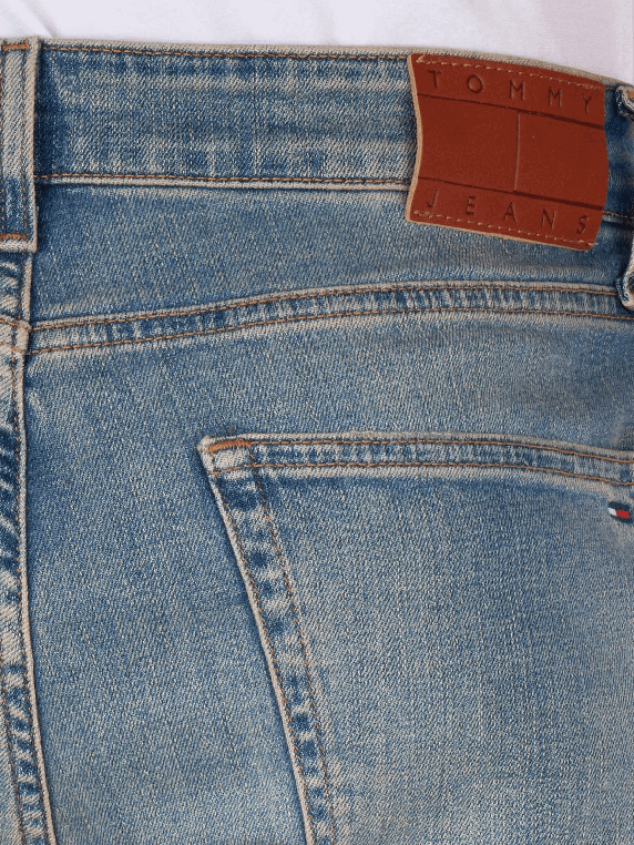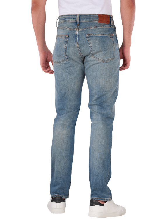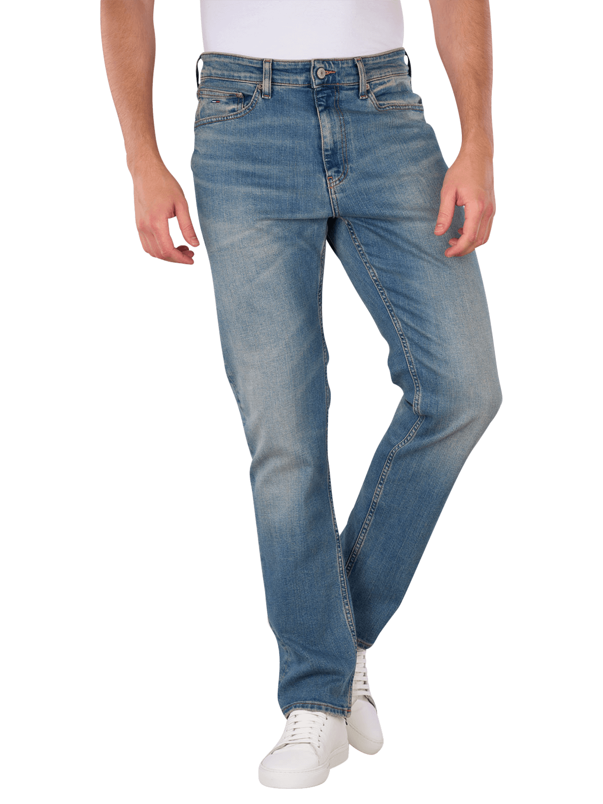 The Tommy Jeans Ryan Slim Straight Fit Denim in medium blue offers a straight fit with a mid-rise waist. These jeans feature a practical zipper and a classic five-pocket design. The stretch content ensures high wearing comfort and freedom of movement. Ideal for everyday wear or casual occasions, these jeans can be combined in various ways and provide an appealing look with easy care.