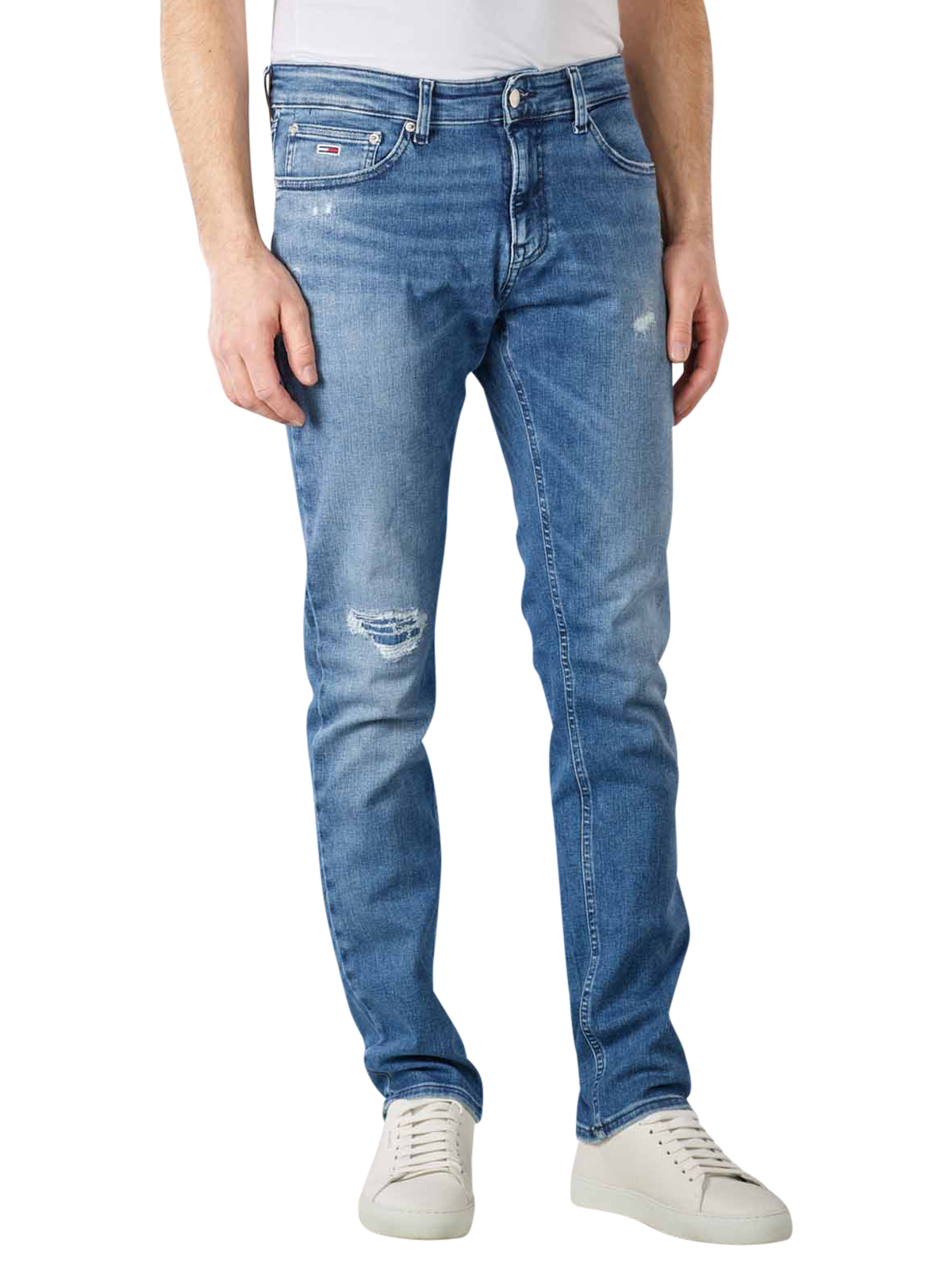 The Tommy Scanton slim fit jeans in the colour denim medium immediately impress with a classic five-pocket style combined with a stylish used look. Thanks to stretchy cotton denim made from recycled materials and a medium rise, these men's jeans are extremely comfortable to wear despite their slim fit. The Tommy Scanton Slim Fit jeans are also easy to care for as they can be machine washed at 30 °C.