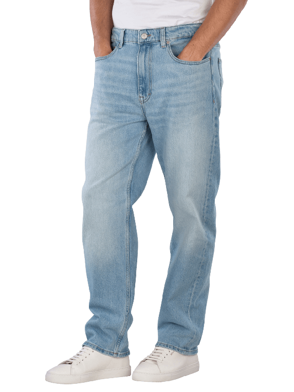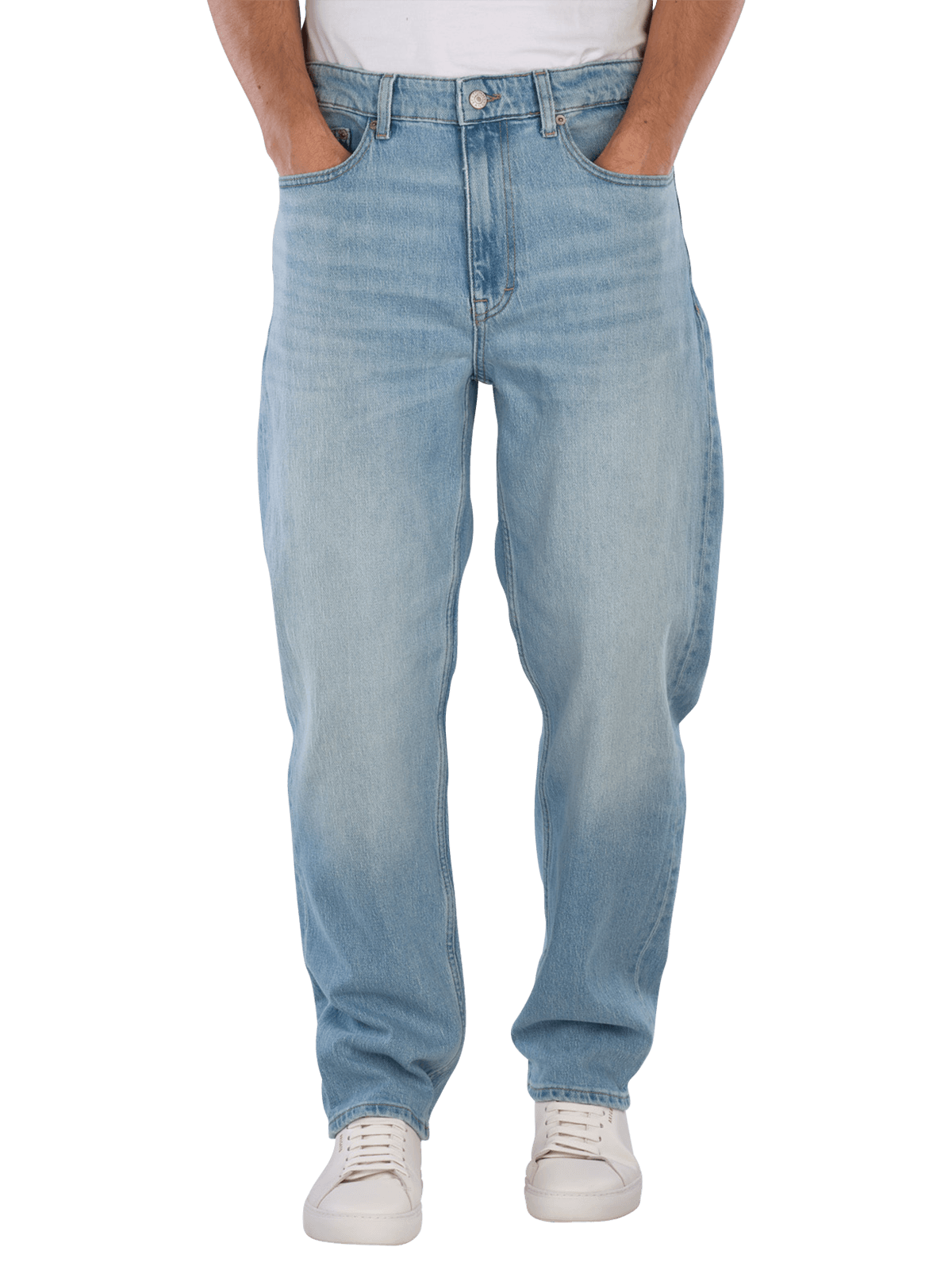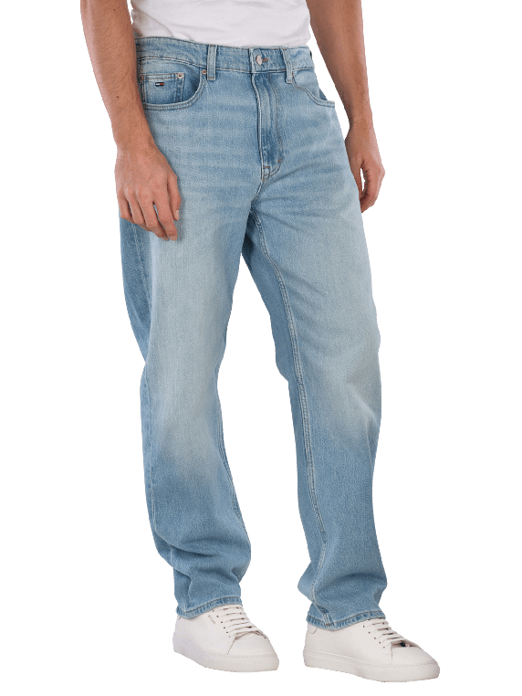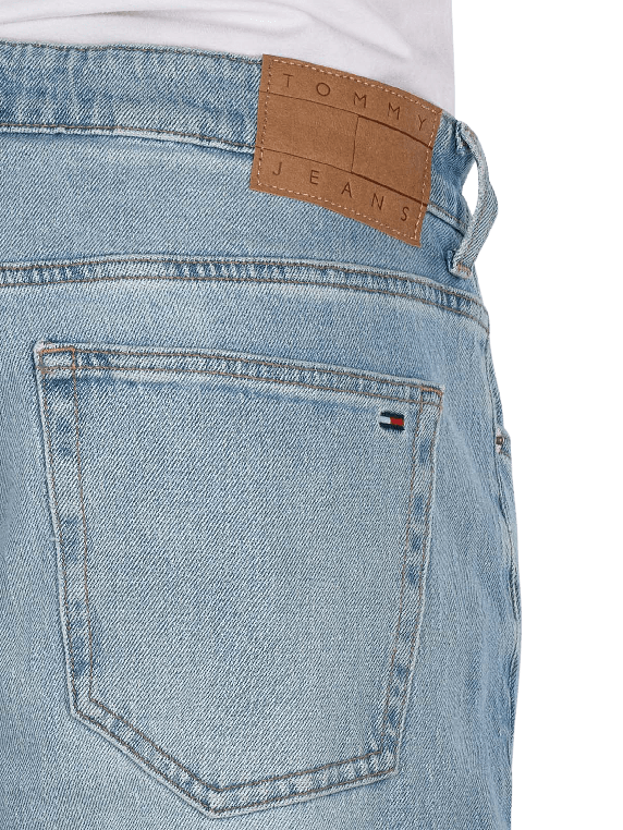The Tommy Jeans Sonny Tapered Fit Denim in light blue features a high waistband and a tapered fit with a narrow leg opening. The jeans have a zipper and five pockets for practical storage. The stretch content provides freedom of movement and comfort. It is suitable for a normal wash cycle at 30°C and meets the Regenerative Cotton Standard. These jeans combine functionality with a modern look.