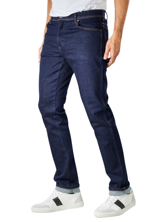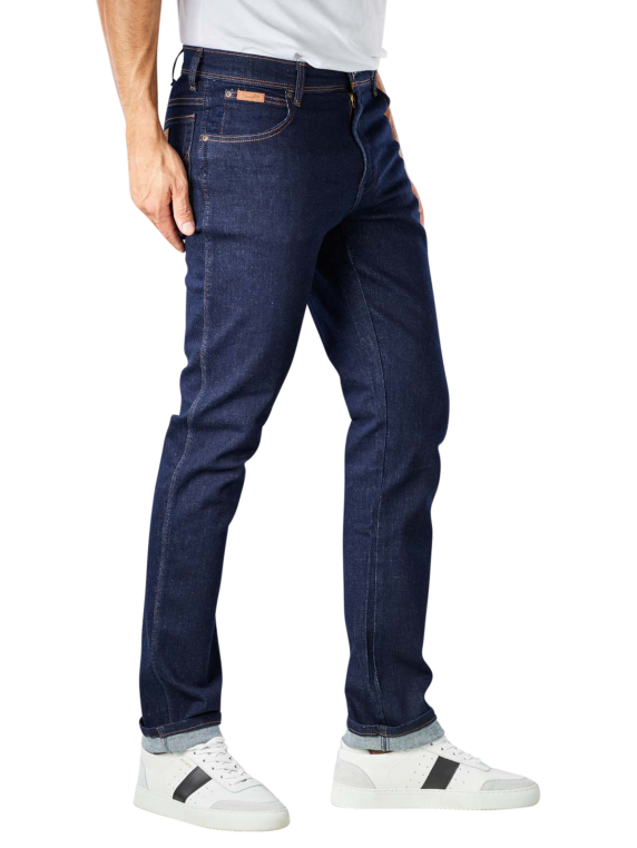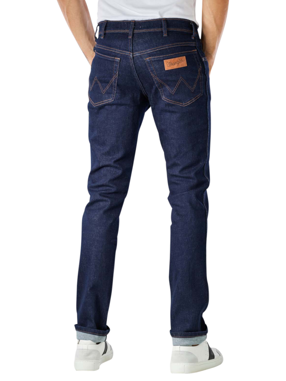 The Wrangler Texas Slim Jeans Straight Fit is a casual pair of men's jeans in a fashionable cut. The waistband sits mid-rise to high. The thigh of the Wrangler Texas Slim Jeans Straight Fit is straight and the leg cut is straight and tight. The men's straight and slim fit jeans are made of 91% cotton, 7% polyester and 2% elastane.