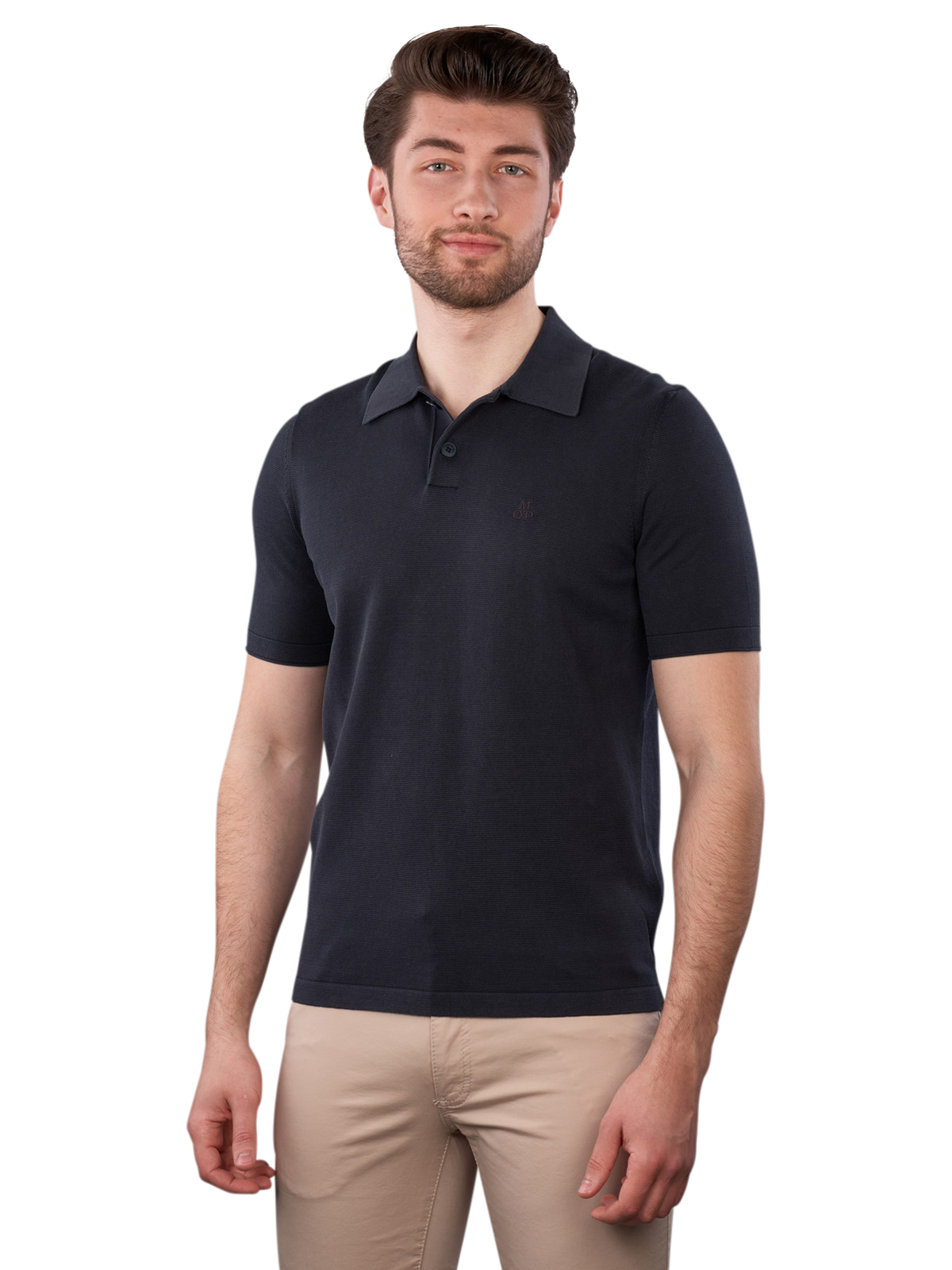The Marc O'Polo Short Sleeve Polo Shirt in Dark Blue features a classic polo collar and short sleeves. It is made from 100% cotton and is suitable for a gentle wash at 30°C. This polo shirt combines comfort and style, making it versatile to pair with. The GOTS certification guarantees environmentally friendly production. Wear it with jeans or chinos for a polished look.
