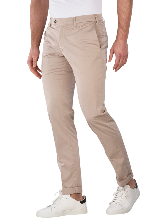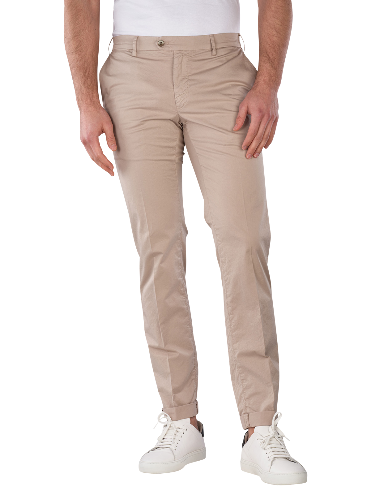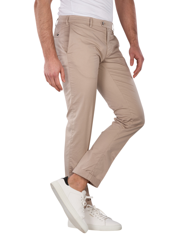 The Mason's New York Chino Regular Fit in Light Beige features a straight leg cut and a medium rise. This men's chino pant combines a thin fabric with a stretch component for optimal comfort. It is suitable for various occasions and can be combined in many ways. The zipper ensures easy handling. Easy to care for in a normal wash cycle at 30°C, it is a practical choice for the modern man.