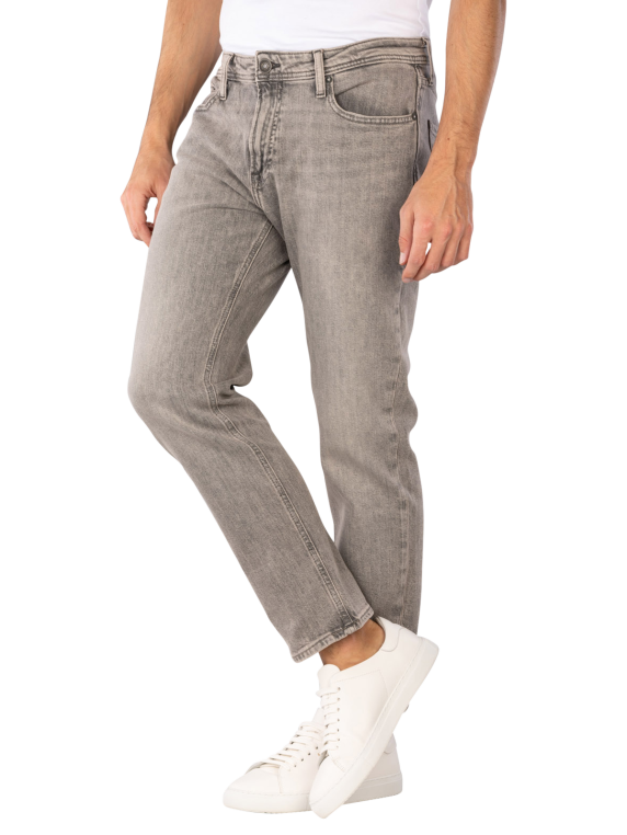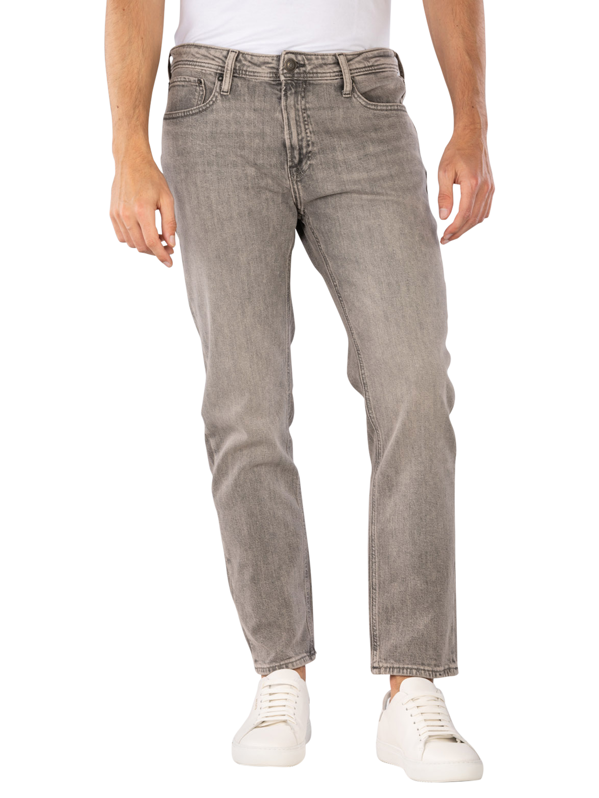 The Jack & Jones Clark Jeans Straight Fit Grey Denim features a slim leg opening and a low rise. It is designed in grey and intended for men. With its Slim Fit/Straight Fit cut and stretch content, it provides high wearing comfort and freedom of movement. The jeans have a classic five-pocket style and a zipper. Care instructions: normal wash cycle at 40°C, do not bleach.