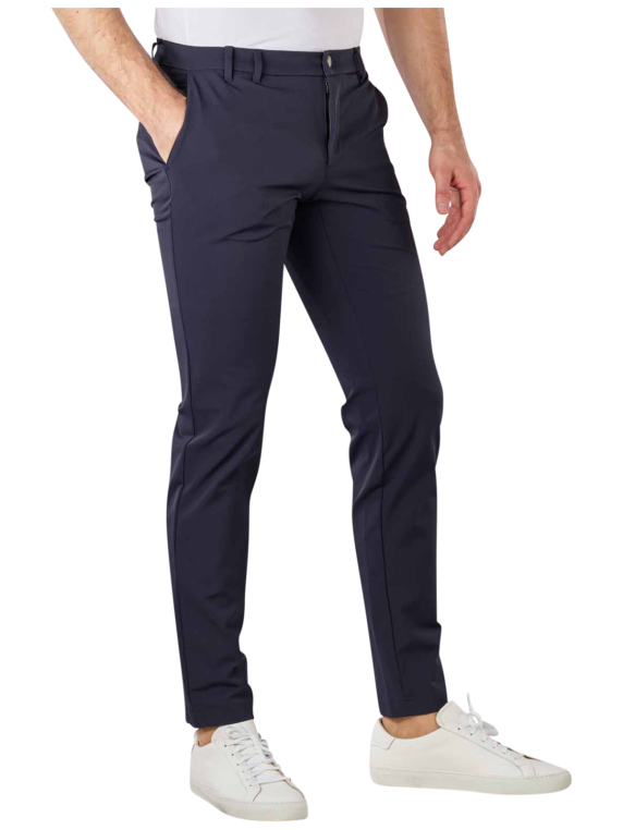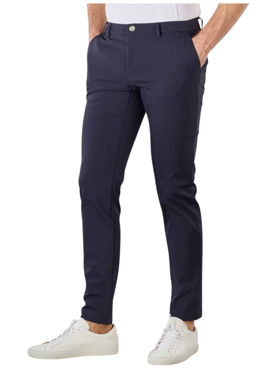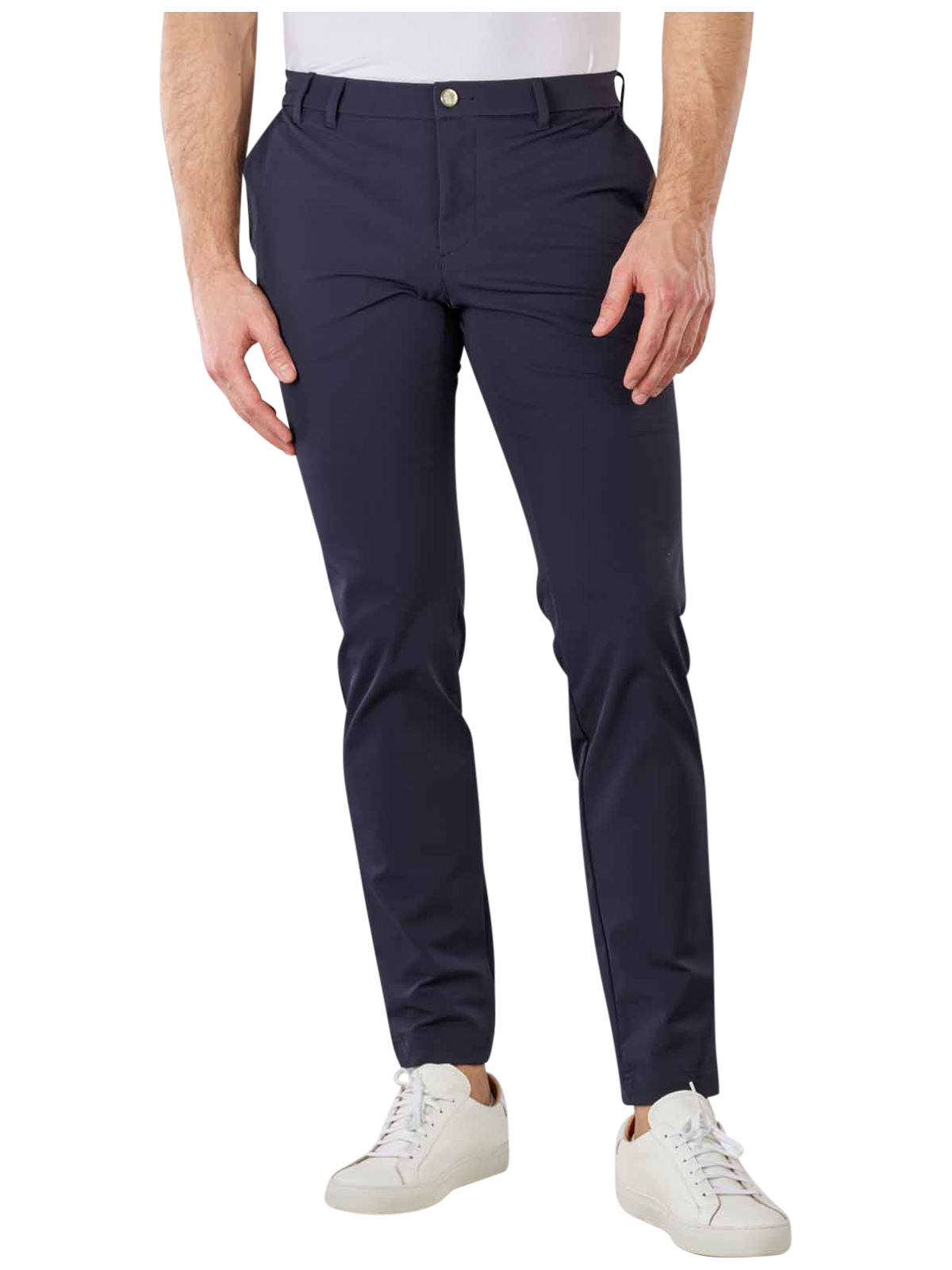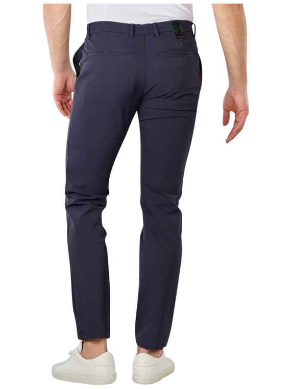 The Alberto Golf Ian 3xDry Cooler Pants Slim Fit men's trousers in navy have a mid-rise waist and a narrow, straight leg that emphasises the masculine silhouette. Made from an innovative, technical and high-performance material, the golf trousers are breathable as well as dirt and water repellent. In addition, the Standard 100-certified material offers maximum freedom of movement and can be washed at 30 °C on a gentle cycle.