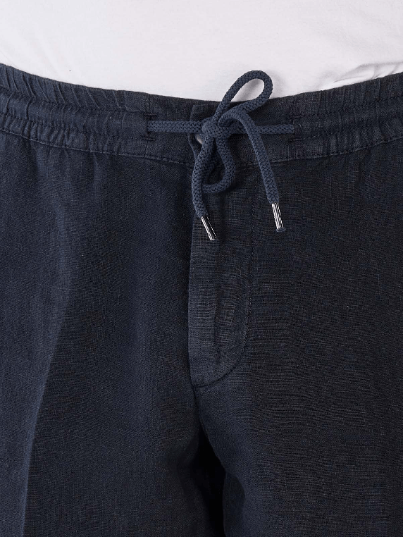 The Alberto House Chino Tapered Fit Linen in Dark Blue offers a comfortable fit and a modern cut. These chino shorts feature a zipper and an elastic waistband for added comfort. They are made from lightweight, 100% linen and are perfect for warm days. Care is easy as they can be washed at 30°C on a gentle cycle. OEKO-TEX STANDARD 100 certified.