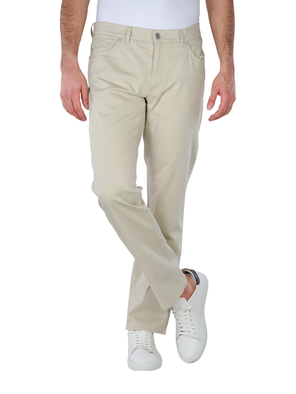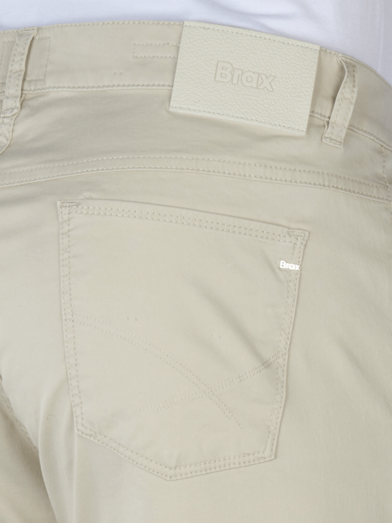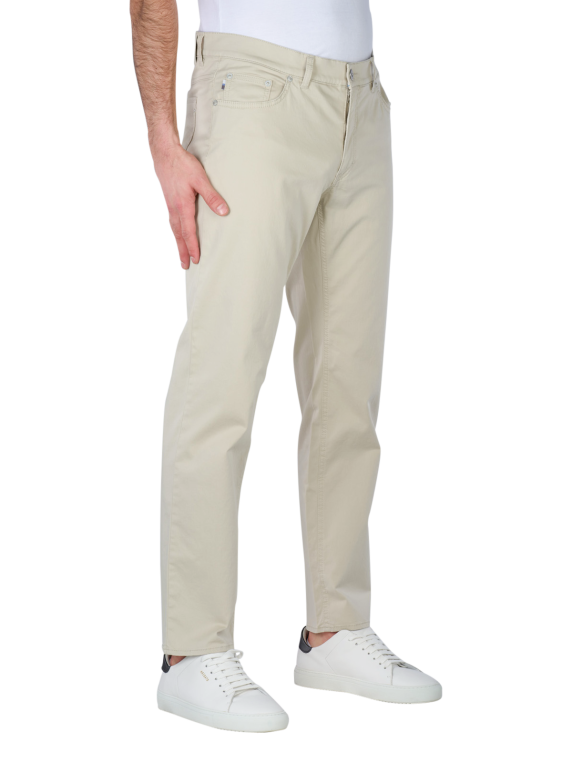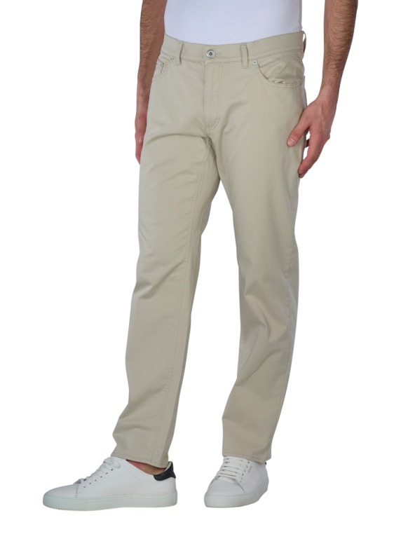 The Brax Cooper 5-pocket trousers in beige combine stylish design with a high level of comfort. These straight fit men's trousers impress with their mid-rise waistband and thin, stretchy fabric that guarantees freedom of movement. The practical zip fastening and classic five-pocket pockets round off the timeless look. Made from 97% cotton and 3% elastane, these trousers are ideal for everyday wear. Easy to care for on a gentle wash cycle at 30°C - perfect for fashion-conscious men.
