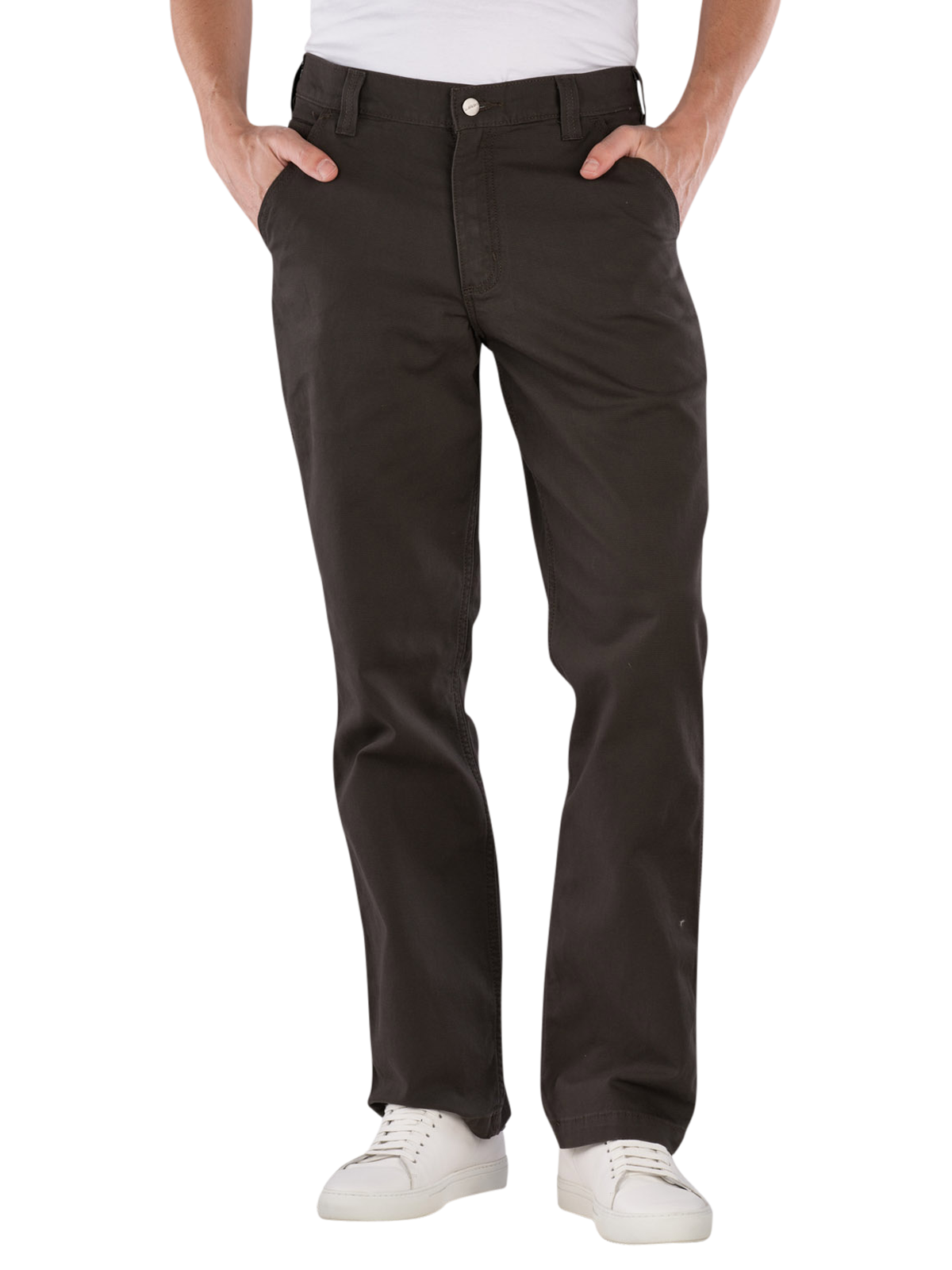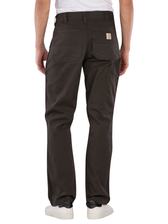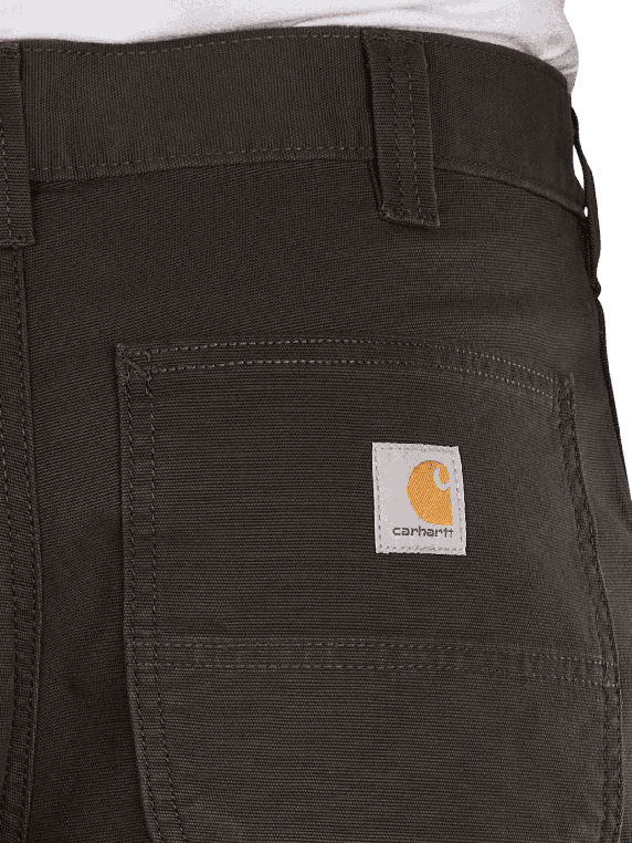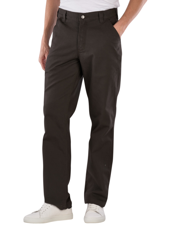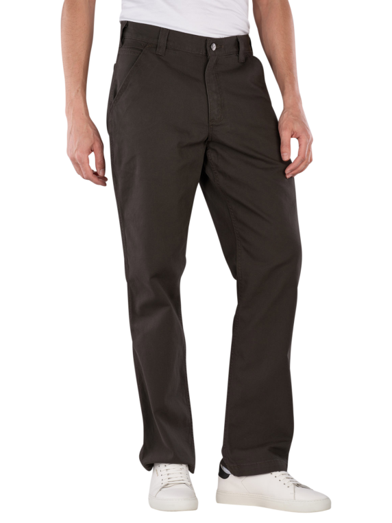 The Carhartt Rugged Flex Work Pants Relaxed Fit in gray offer a straight and wide leg fit. Equipped with a mid-rise waistband and a zipper, they are designed for men. These chino pants combine functionality with a robust design and a stretch component that allows freedom of movement. They are suitable for use in trades or recreational sports and can be washed at 30°C in a normal wash cycle.
