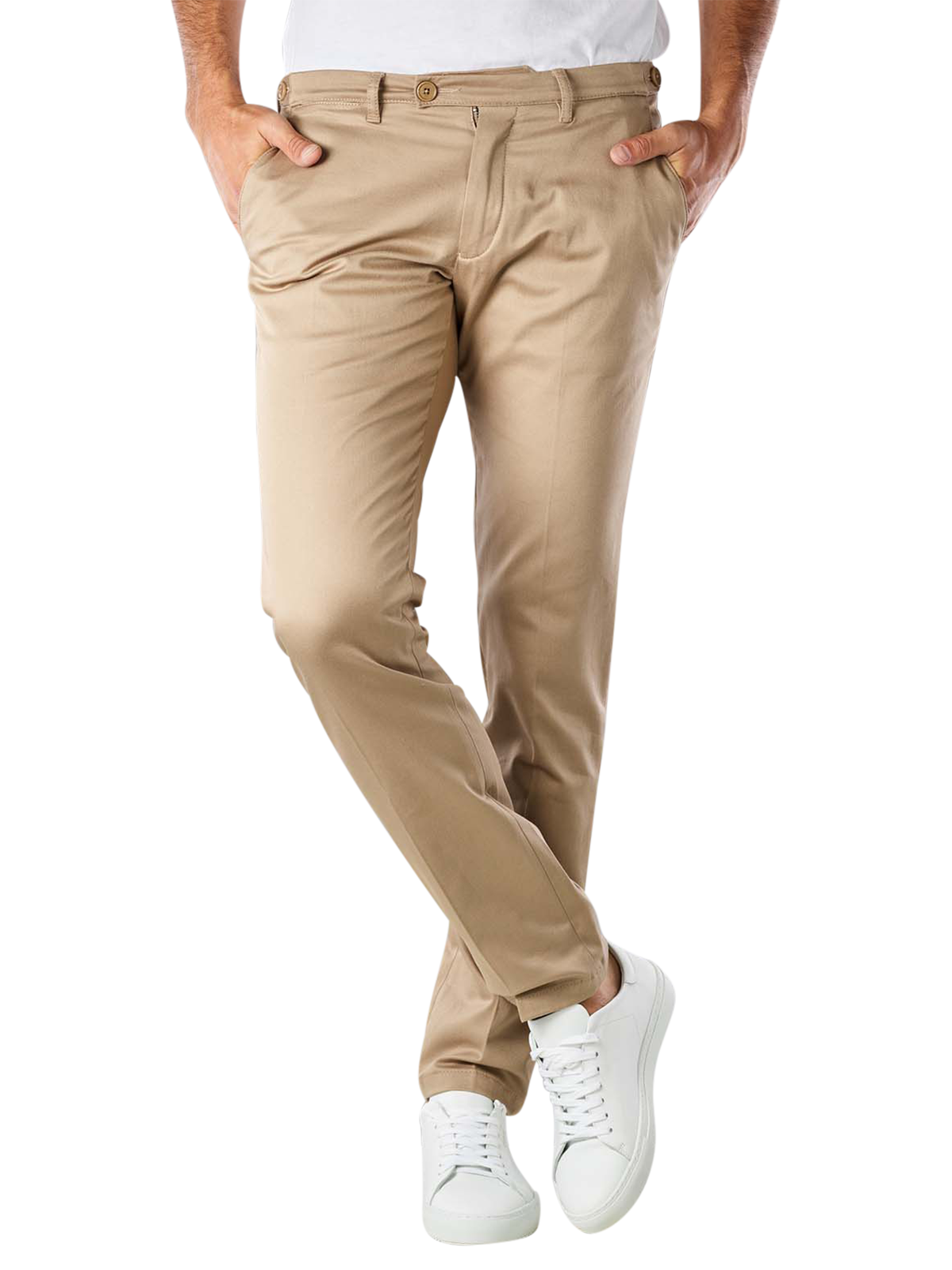 These fashionable and fully on-trend chinos with zip fastening and an optimum stretch content are the ideal companion. Whether for a casual business look or for leisure, hardly any trousers are so versatile. The slim fit flatters the figure. They fit snugly, yet allow for comfortable freedom of movement. The chino is made of 65% polyester and 35% cotton.