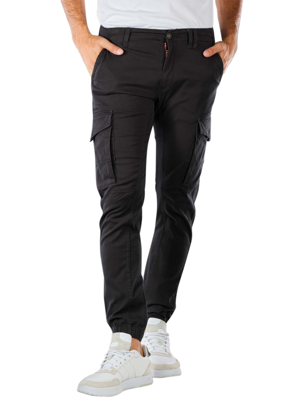 The Jack & Jones Paul cargo trousers for men have a close-fitting leg cut and a mid-rise waist. These trousers in classic black impress with a comfortable tapered fit and are made from thin, stretchy material. The zip makes them easy to put on and take off. Made from 98% cotton and 2% elastane, they are easy to care for on a normal wash cycle of 40°C, but are not suitable for bleaching. An ideal choice for stylish everyday looks.