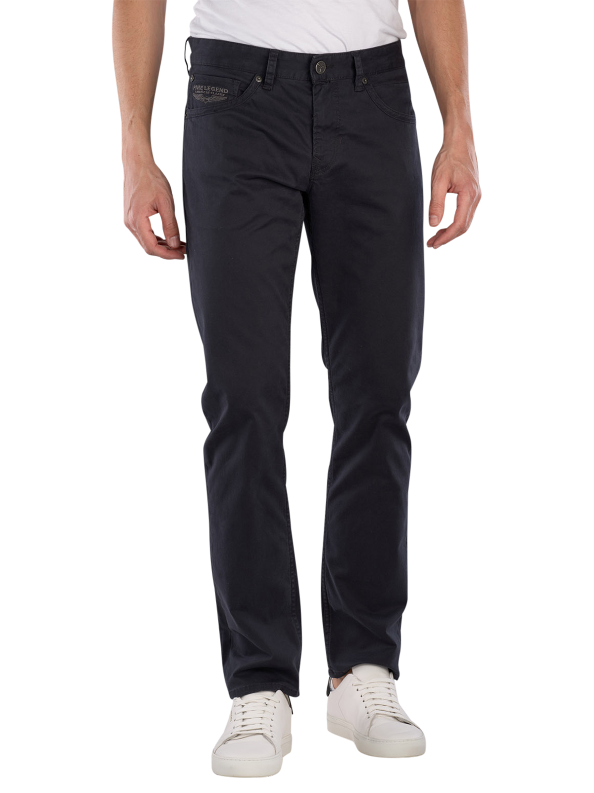 The PME Legend Navigator 5-Pocket Pants offer a straight fit with a mid-rise waist and are available in dark blue. These five-pocket pants feature a zipper and a stretch component that provides freedom of movement. They are suitable for various leisure activities and can be combined in versatile ways. Easy to care for in a normal wash cycle at 30°C, they are a practical choice for the modern man.