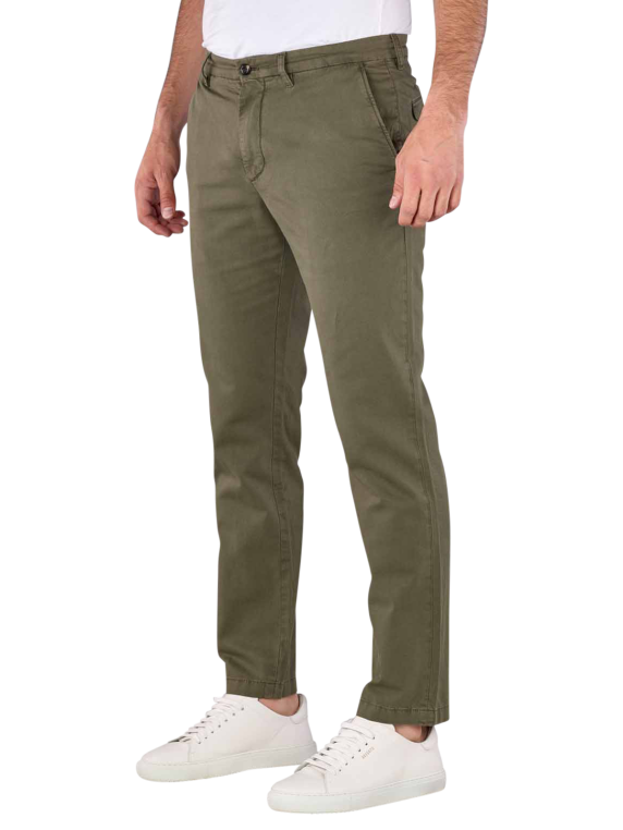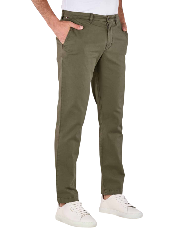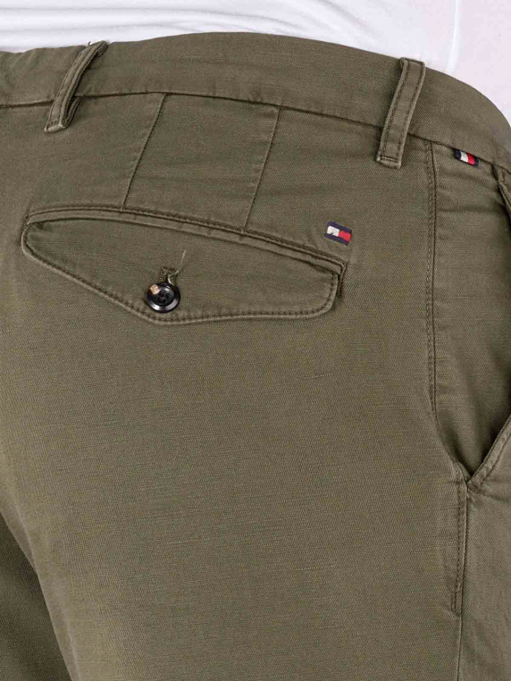 This chino from Tommy Hilfiger in Army Green is a beautiful pair of trousers in a classic fabric with a fine weave. The Tommy Hilfiger Chinolino Chino is a casual style with a straight fit. The chino is made from 72% cotton, 26% linen and 2% elastane and therefore also has an element of stretch. The chino can be washed at 30 degrees on a special gentle wash cycle.