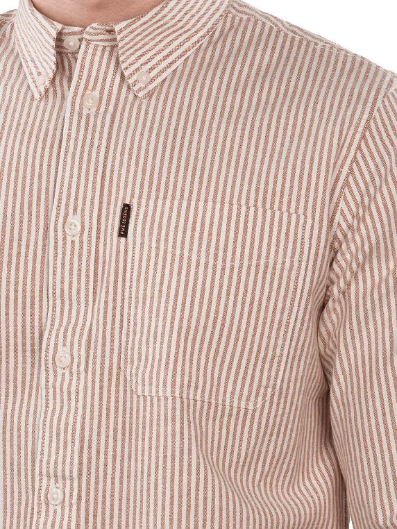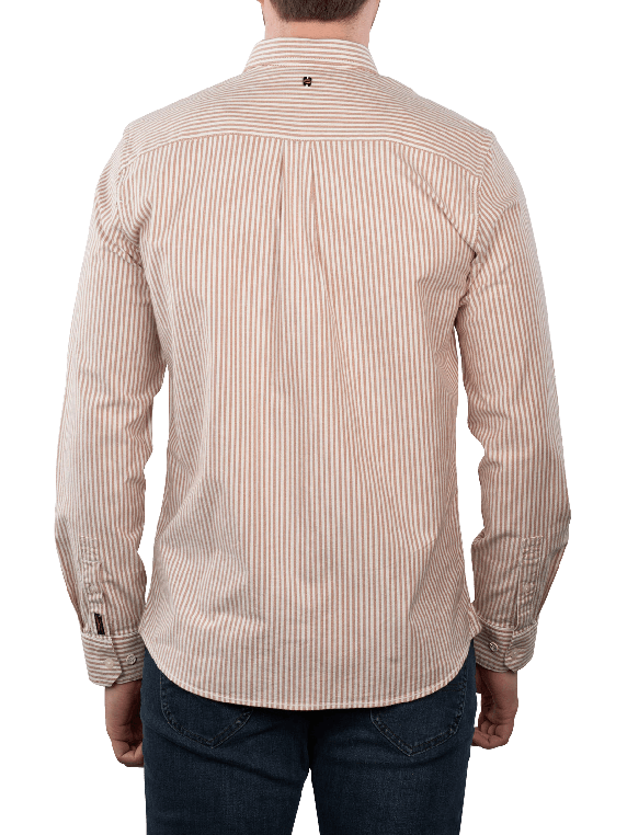 The PME Legend Oxford Shirt Longsleeve Stripe in Glazed Ginger features a classic Kent collar and a comfortable fit for men. With a composition of 97% cotton and 3% elastane, it provides pleasant wearing comfort and freedom of movement. The shirt is machine washable at 30°C on a gentle cycle and is suitable for various occasions, from casual to business. The striped design adds a modern touch to the look.