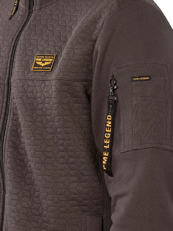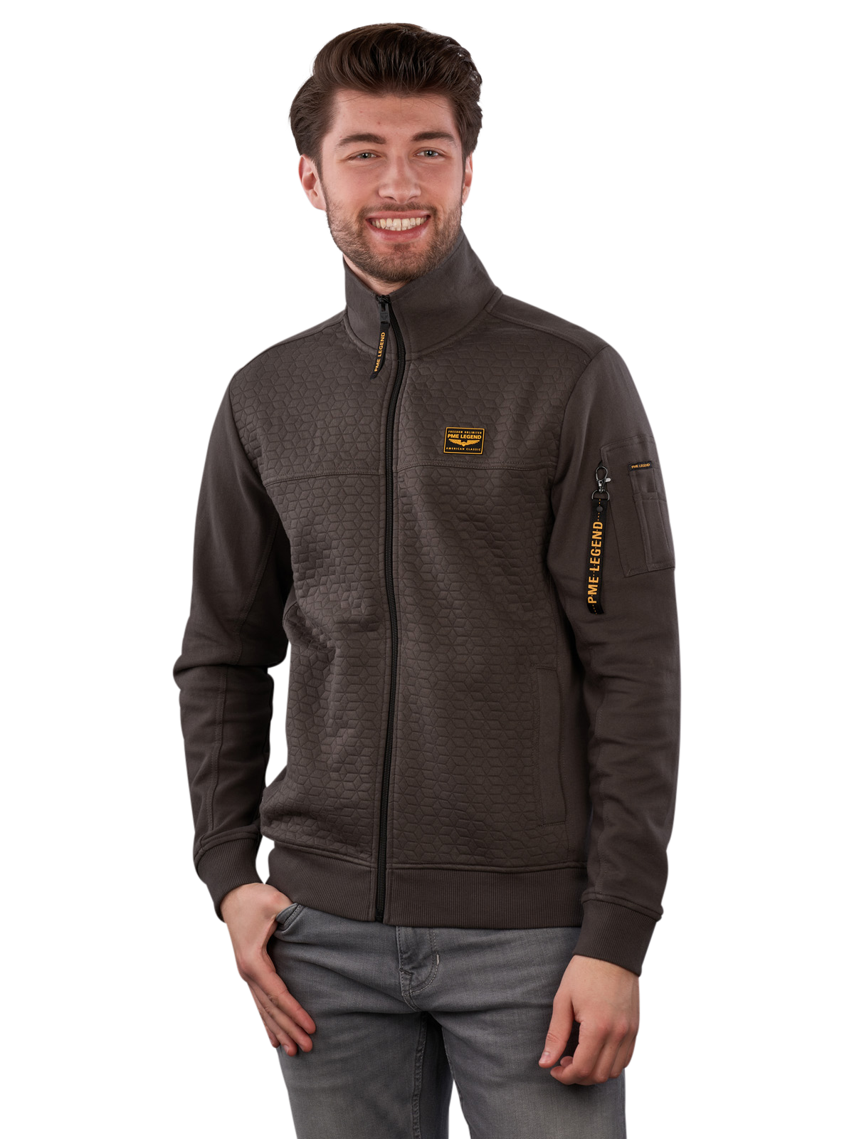 The PME Legend Zip Jacket Jacquard Interlock in Beluga is a men's pullover without a hood featuring a stand-up collar. It offers a comfortable fit and is made from recycled material. The jacket is suitable for everyday wear and can be combined in various ways. It is easy to care for and can be washed at 30°C in a normal wash cycle. The combination of polyester and cotton ensures pleasant wearing comfort.