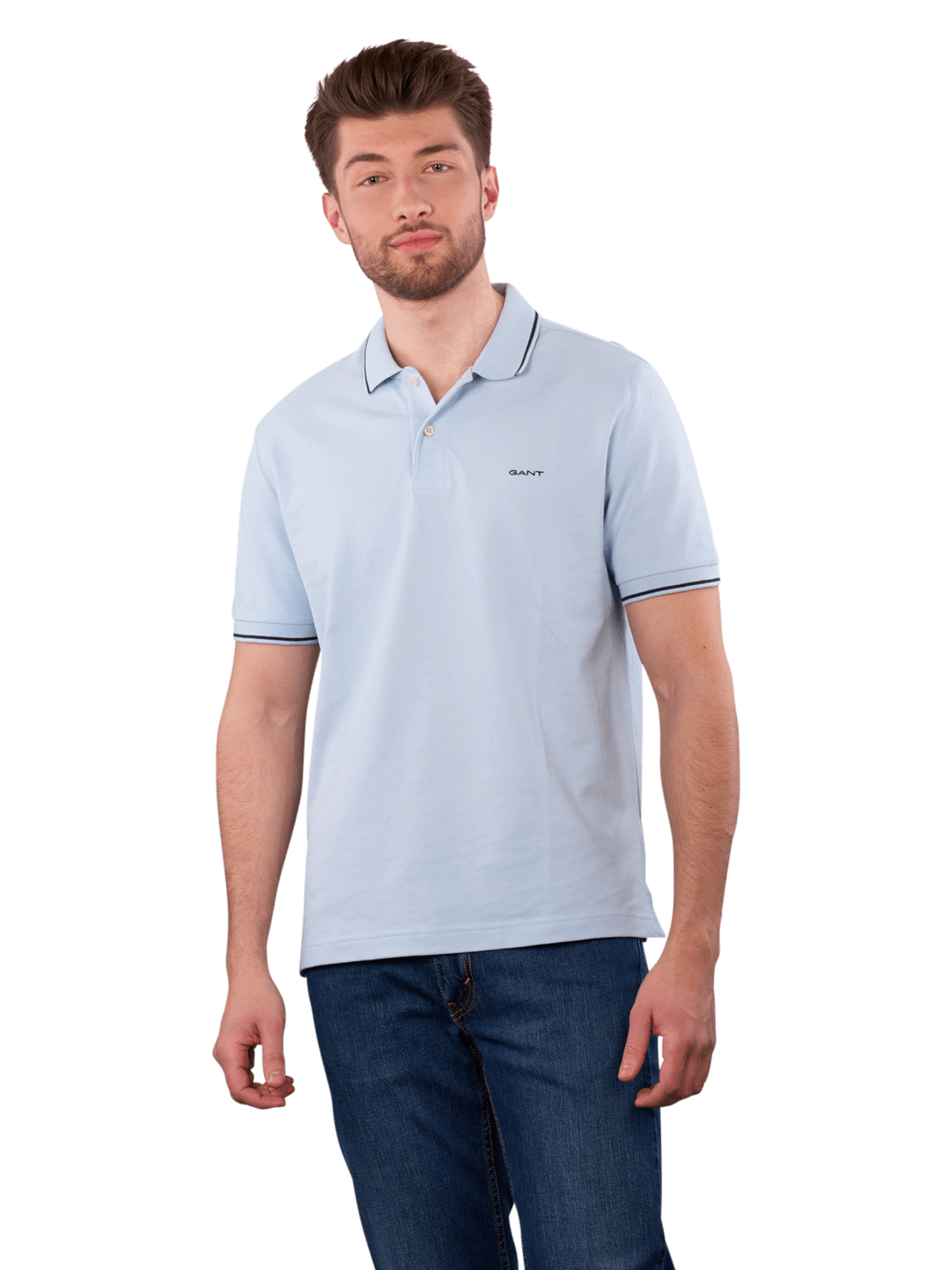 Discover the Gant Tipping Pique Polo in Fresh Blue - the perfect polo shirt for style-conscious men. Made from 100% high-quality cotton, it offers a high level of comfort and breathability. The classic polo collar and stylish tipping details give the shirt a timeless elegance. Ideal for leisure activities or casual occasions, this versatile shirt is easy to combine. Easy to care for and washable on a normal wash cycle at 40 °C, it is the ideal companion for every day.