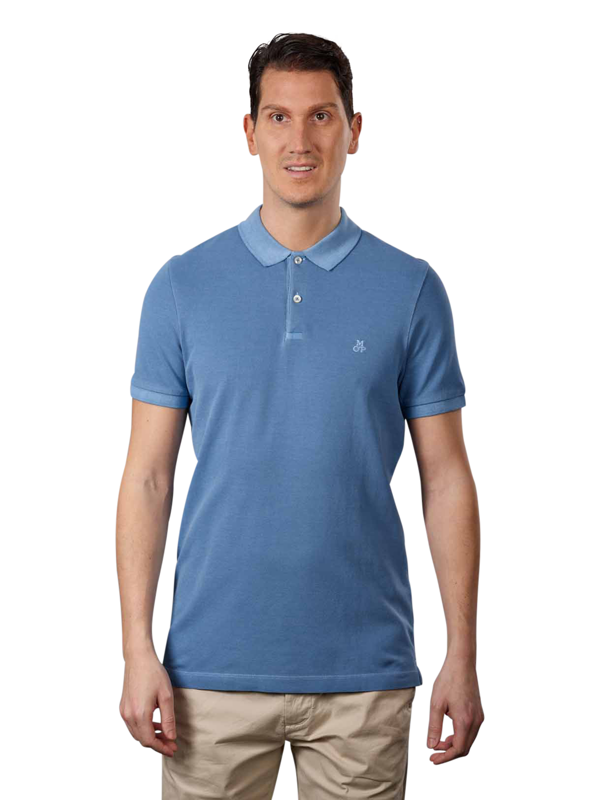 A classic polo shirt that fastens with two buttons belongs in every wardrobe. This Marc O'Polo model not only impresses with its contrasting colour and tone-on-tone collar, but also with the discreetly visible embroidered brand logo. The polo shirt with short sleeves has a slim fit and no breast pocket, while a small amount of elastane in the high-quality cotton fabric ensures the necessary freedom of movement.