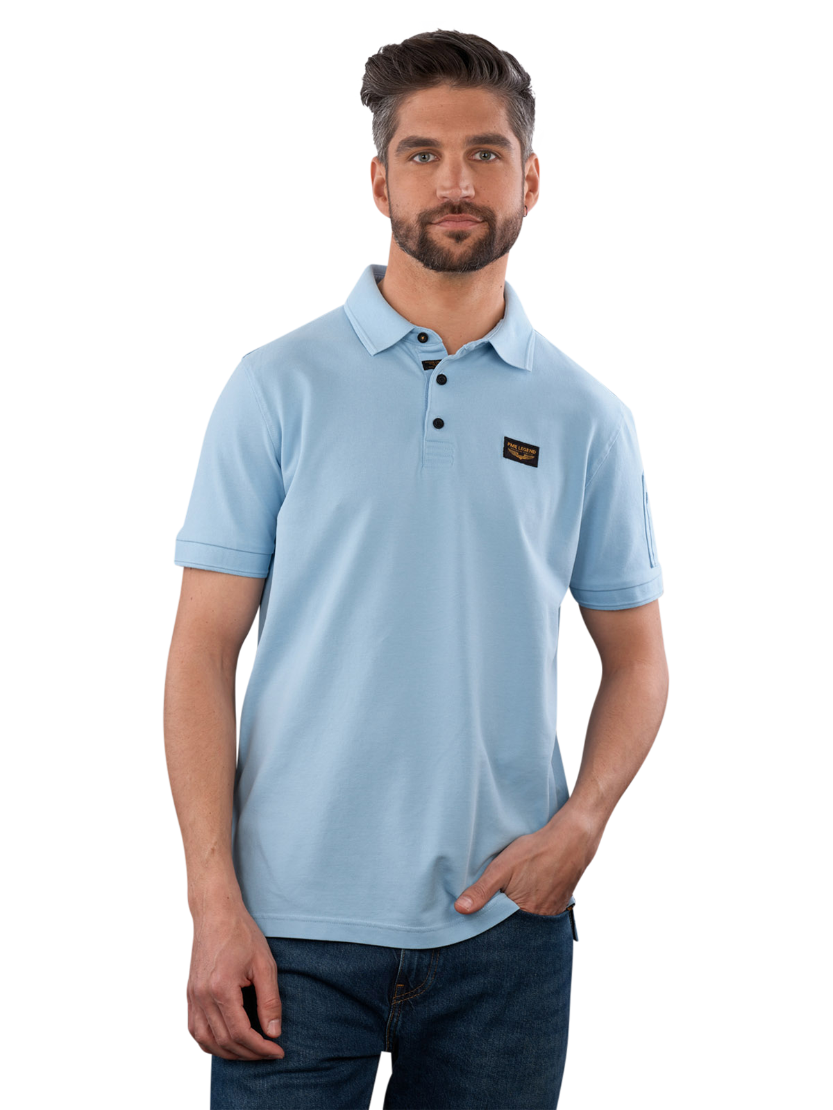 The PME Legend American Classic Polo in Airy Blue features a classic polo collar and a comfortable fit. Made of 95% cotton and 5% elastane, it ensures high wearing comfort and freedom of movement. It is machine washable at 30°C and easy to care for. This polo is suitable for leisure activities and casual occasions, and its light blue color makes it versatile for pairing.