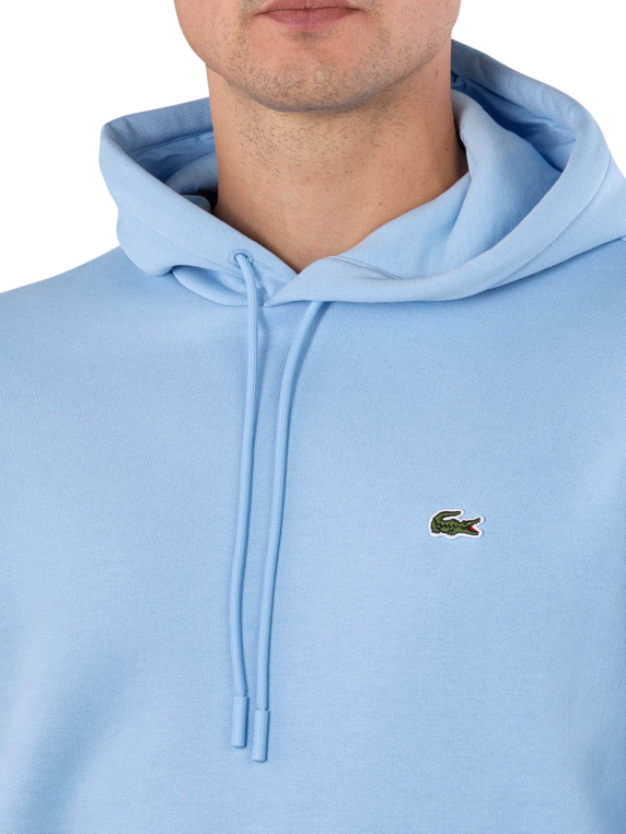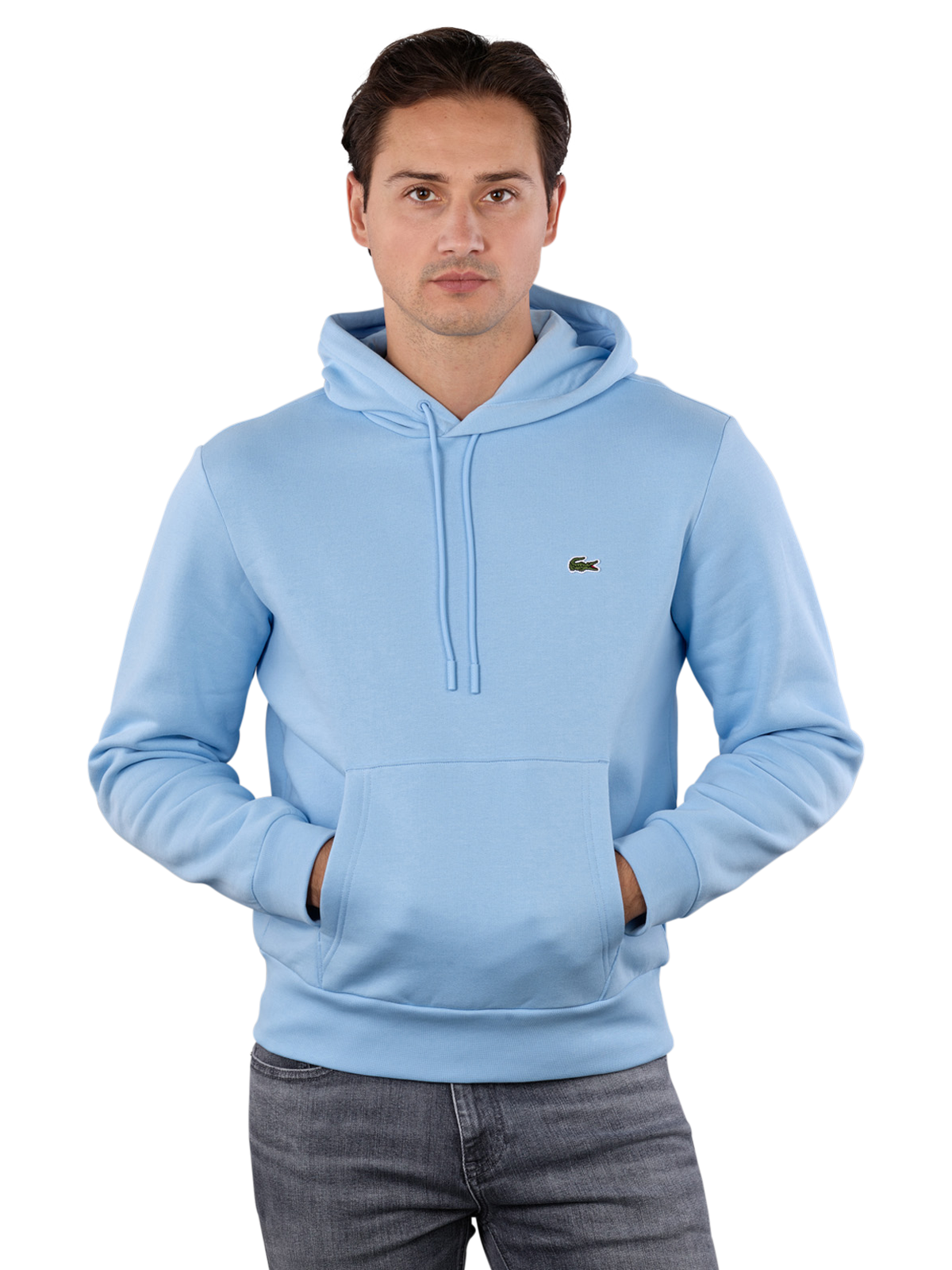The Lacoste Hooded Sweatshirt in light blue is a stylish pullover for men. It is made from 84% organic cotton and 16% polyester and offers comfort and durability. The hood is not detachable and provides additional protection. The jumper is easy to care for and can be washed at 30°C on a normal wash cycle, but cannot be bleached. Ideal for everyday wear and sporting activities, it combines style and functionality.