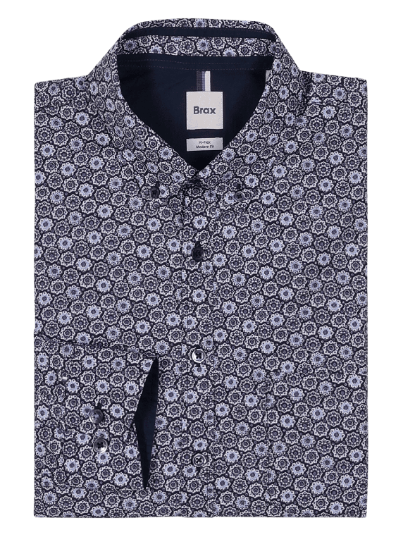 The Brax Daniel shirt with chest pocket in Ice Blue features a modern Kent collar shape and is available in several colors. It is suitable for formal and casual occasions. The combination of 97% cotton and 3% elastane ensures comfortable wear and a good fit. The shirt is easy to care for and can be washed at 30°C on a gentle cycle, making maintenance easier.