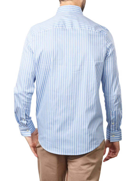 The men's shirt from Drykorn comes from the Eco range and is made from a composition of 66% cotton, 30% polyamide and 4% elastane. The fit is a regular fit and the striped shirt is available in several colour options. This men's shirt is long-sleeved, has a Kent collar and there are no pockets or logos on the front.