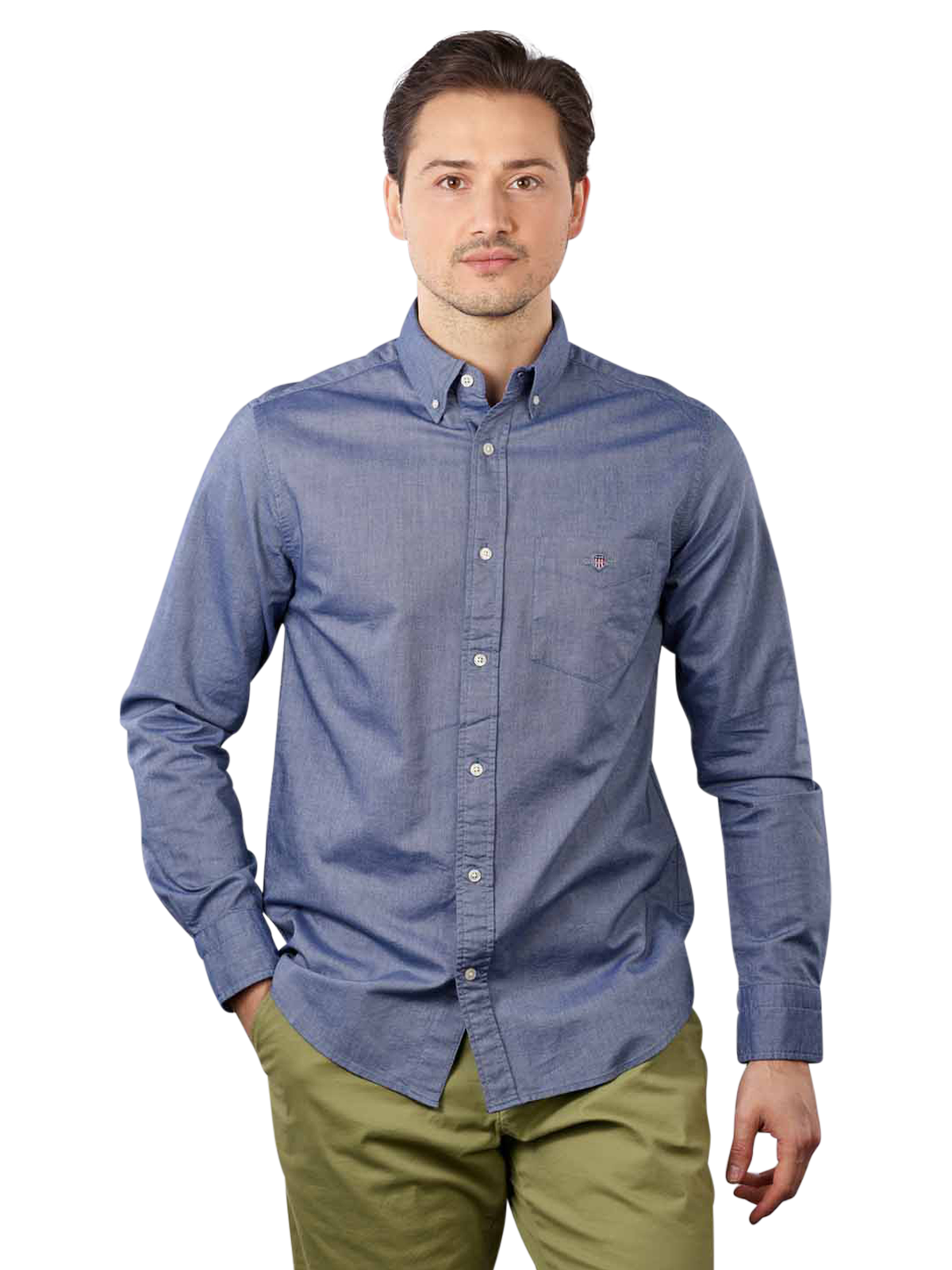 This Oxford shirt from Gant is a classic casual-style shirt in a plain dark blue colour. There is a breast pocket on the left side of the chest with the Gant logo discreetly embroidered on it. The Oxford shirt has long sleeves and a classic button-down collar. It is cut in a regular fit. The Oxford shirt is also easy to care for as it is made from 100 per cent cotton and can be washed at 40 degrees on a normal cycle.