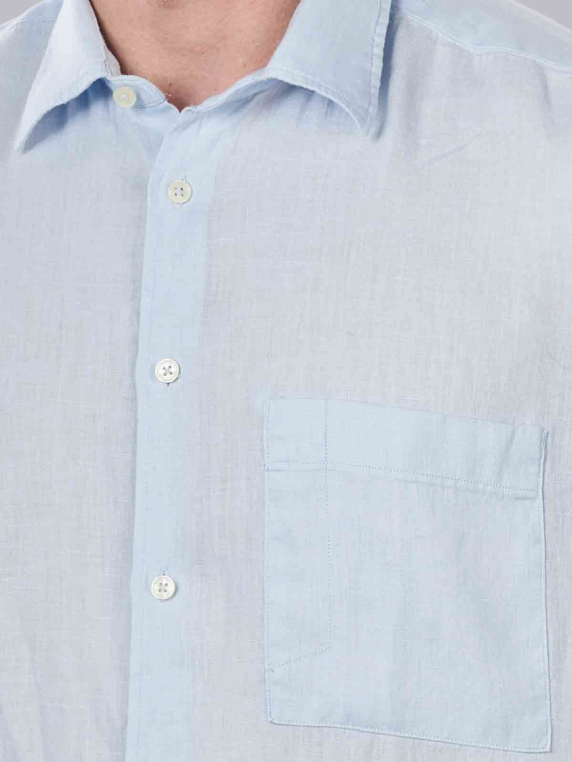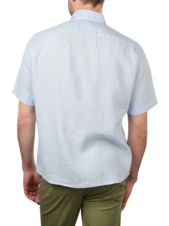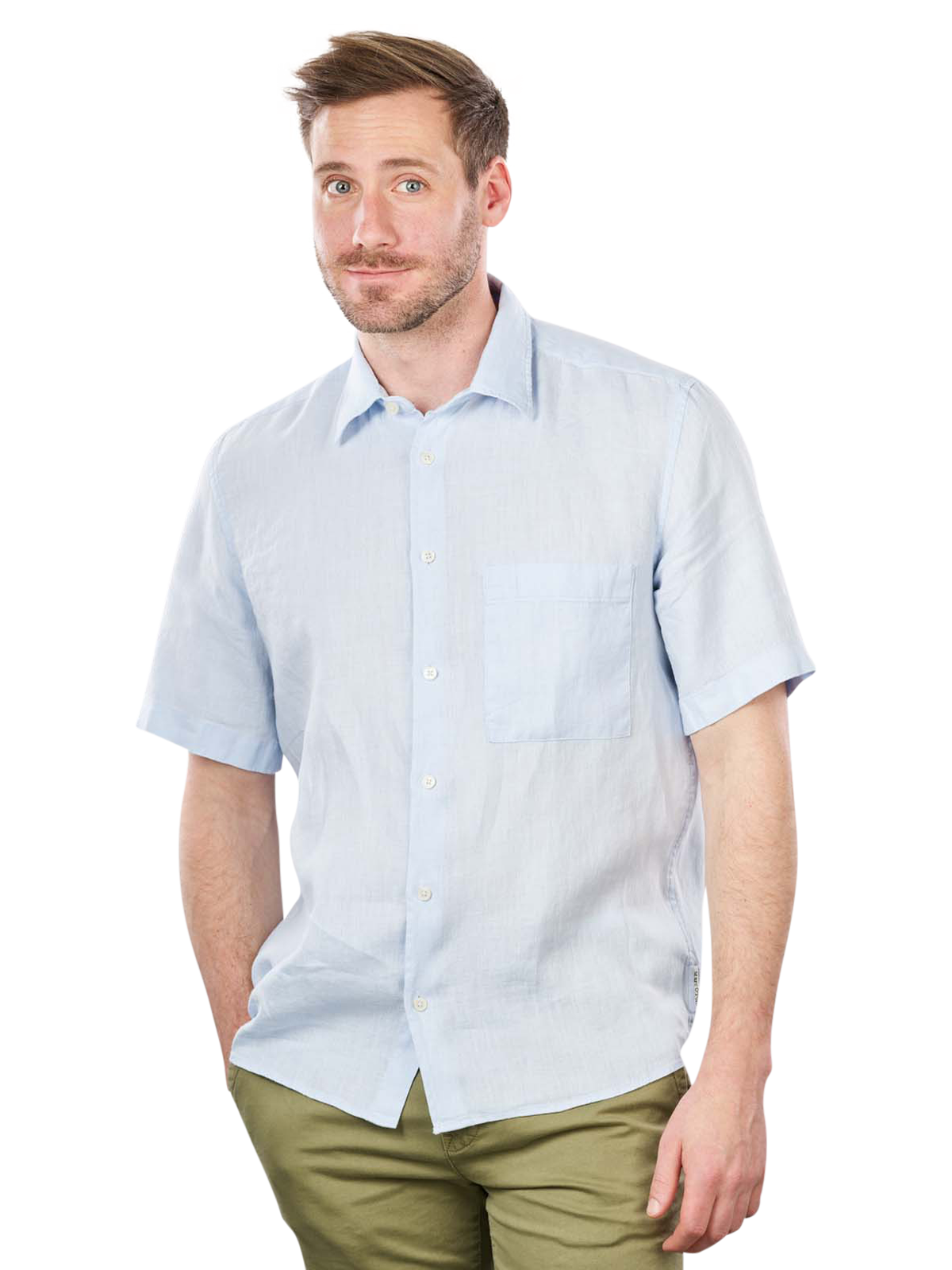 This short-sleeved classic men's shirt is made from 100% linen. The high-quality material is sufficiently airy to keep you cool in the heat. It is fitted with a Kent collar and a breast pocket. This collar shape suits both elegant and casual outfits. It allows the wearer to wear the shirt without or with a tie. The brand logo is discreetly visible.