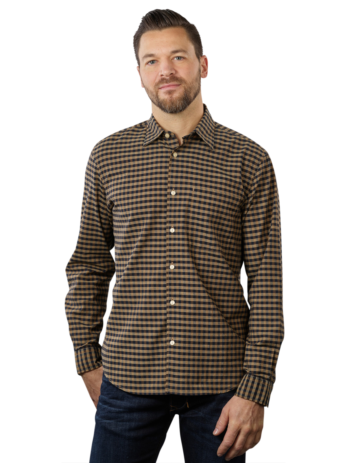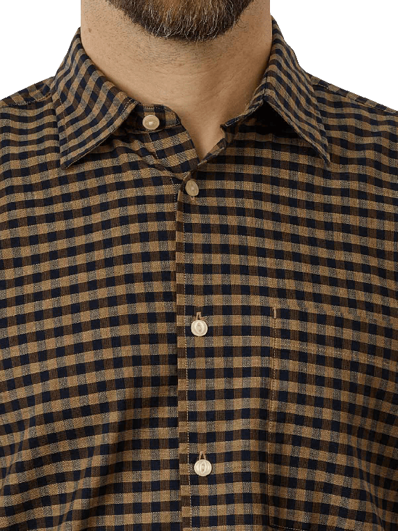 The fashionable blue and brown checked long sleeve in the long sleeve version is made from sustainable organic cotton. The trendy Kent collar gives the shirt, which fits perfectly on the body, a particularly attractive character. The label of the well-known brand is discreetly visible on the right side of the chest.
