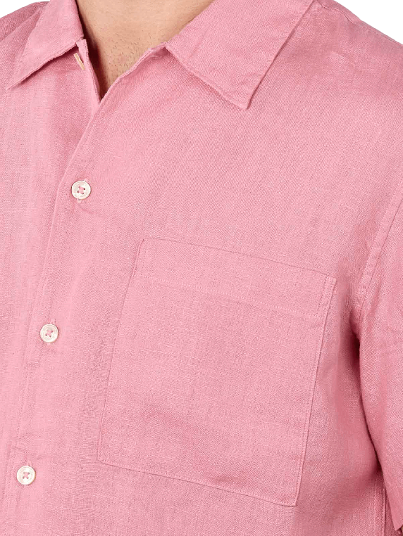 The Marc O'Polo short sleeve shirt in the colour Strawberry Mauve impresses with its casual linen look and is perfect for men. It belongs to the shirts/blouses category and has a classic Kent collar. Made from 100% linen, it offers breathable comfort. A gentle wash cycle at 30°C is recommended for care and it should not be bleached. Ideal for summer days.