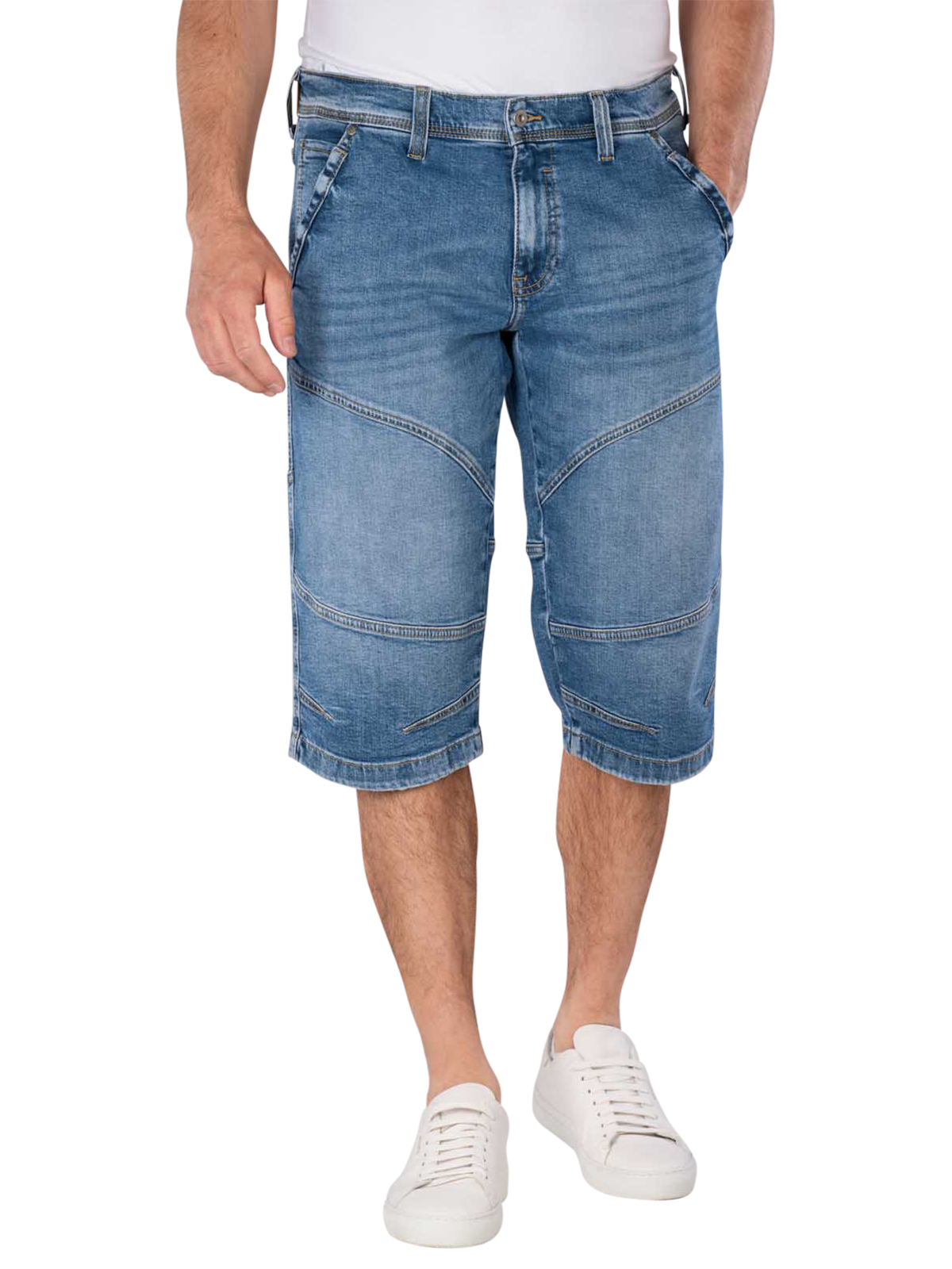 The Mustang Fremont shorts in mid-blue are the perfect choice for fashion-conscious men. With their classic five-pocket style and comfortable stretch fabric, they offer both freedom of movement and a stylish look. Made from 99% cotton and 1% elastane, they impress with their standard thickness and durability. The practical zip makes them easy to put on and take off. Ideal for various leisure activities - combine the shorts in a variety of ways for a relaxed, sporty look.