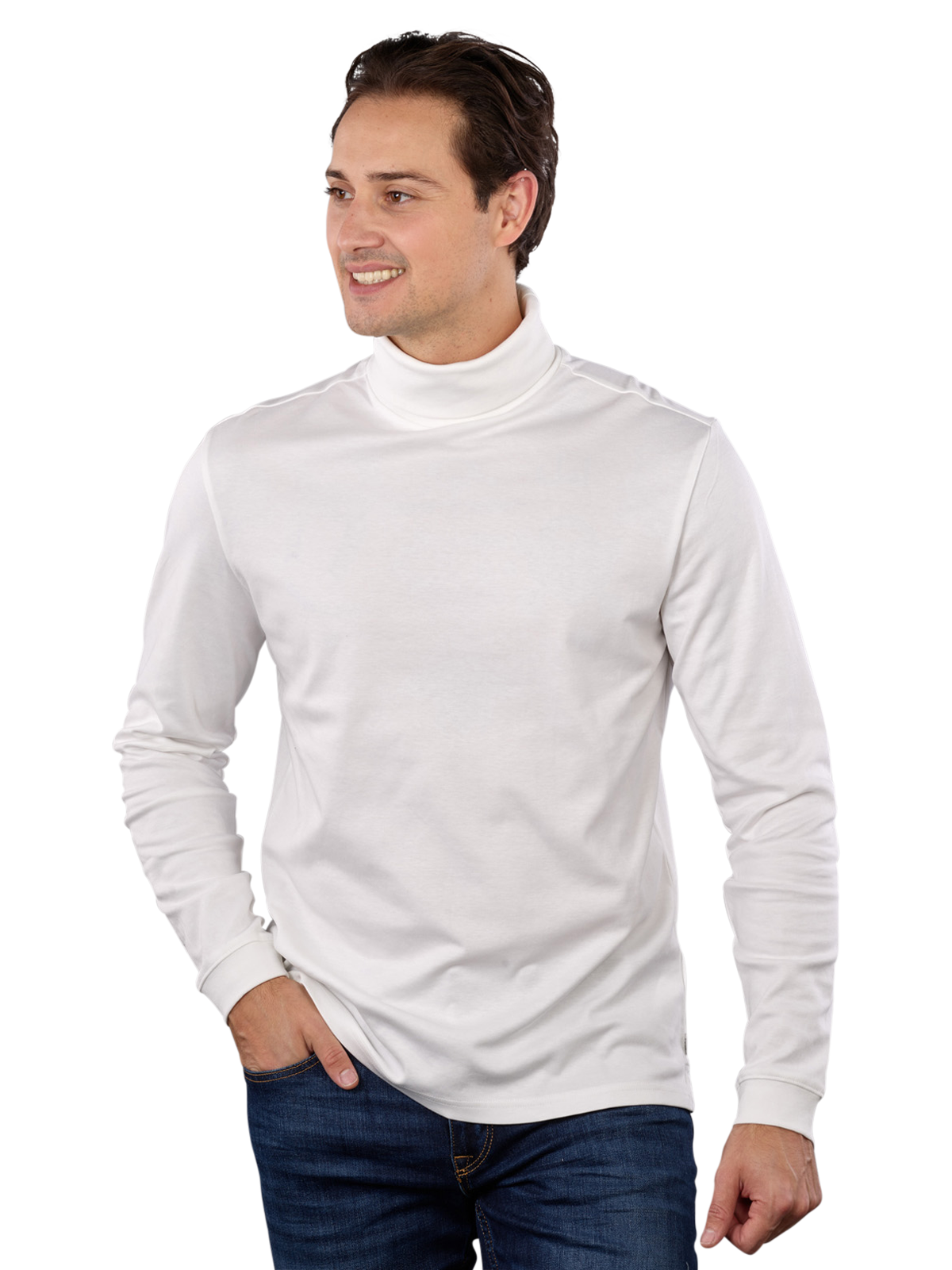 The Brax Benno jumper in off-white stands out with its elegant ecru colour and is specially designed for men. This turtleneck jumper combines style and comfort and is perfect for chilly days. Made from 52 per cent cotton and 48 per cent lyocell, it is soft to wear. Easy to care for on a gentle wash cycle at 30°C, this jumper is a must-have for every man's wardrobe.