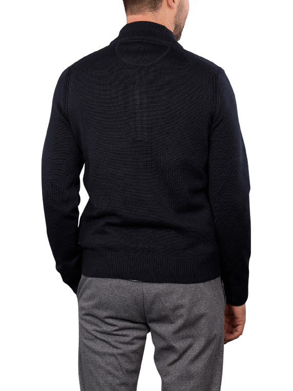 The Brax Steffen Troyer in dark blue offers a classic look with a practical zip collar. The sweater is designed for men and is perfect for cooler days. With a high cotton content, it ensures pleasant wearing comfort. The special gentle wash cycle at 30°C guarantees easy care. Combine it with jeans or chinos for a casual yet stylish appearance.
