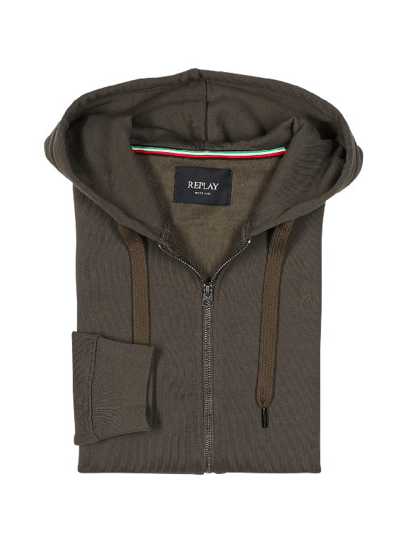 The Replay Zip Hoodie in olive features a non-removable hood and is ideal for casual leisure looks. With a practical zipper and a comfortable fit, it is perfect for everyday wear or relaxed activities. The hoodie is machine washable at 30°C on a gentle cycle and is easy to care for. The combination of 80% cotton and 20% polyester ensures pleasant wearing comfort and durability.