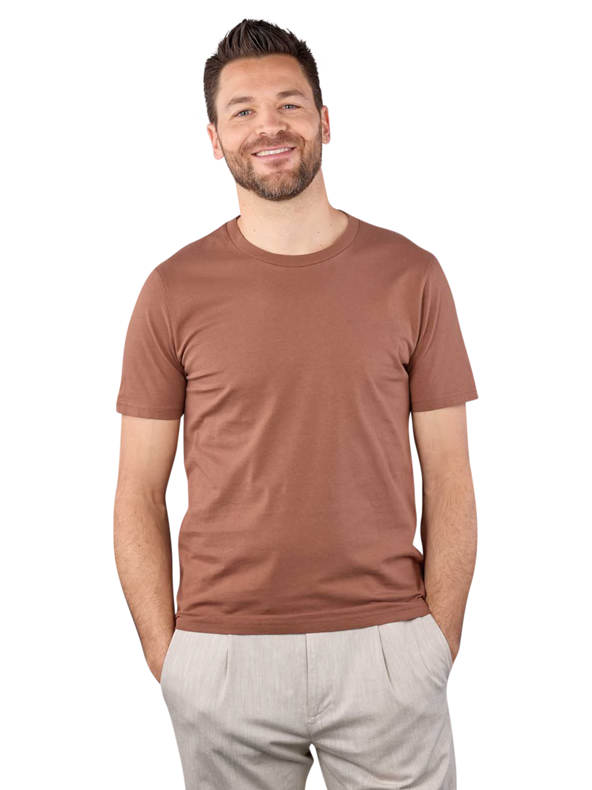The Cologne-based premium label Armedangels is committed to sustainability and fair production methods. This also applies to the short-sleeved Jaames T-shirt in a regular fit. It is plain-coloured and should not be bleached, tumble-dried, dry-cleaned or ironed too hot. The best way to clean it is on a special gentle wash cycle at 30°. It has a round neck and a discreetly visible logo.
