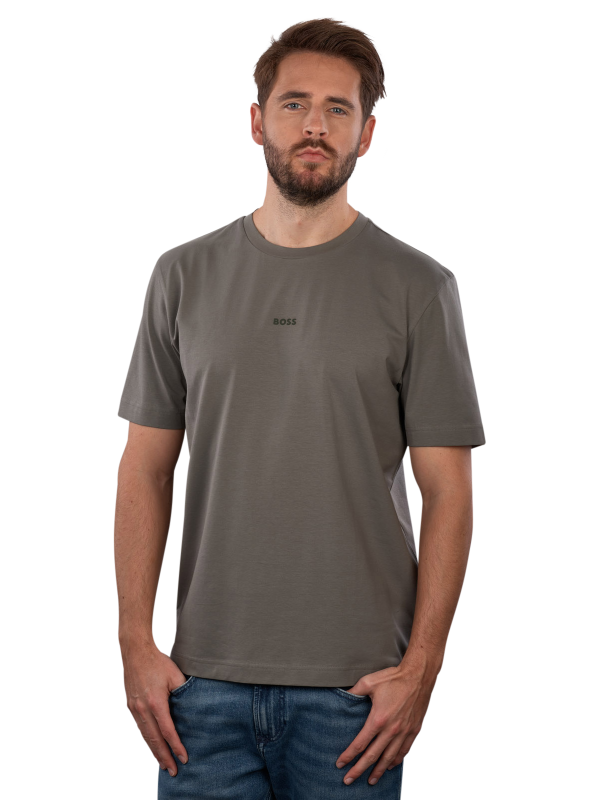 The Boss Orange TChup T-Shirt in Open Grey features a round neckline and is made from an easy-care material blend. It is suitable for various leisure activities and can be combined in many ways. The use of regenerative cotton supports sustainable fashion. Washable at 30°C on a gentle cycle, it remains durable and shape-retaining. A practical garment for the modern man.