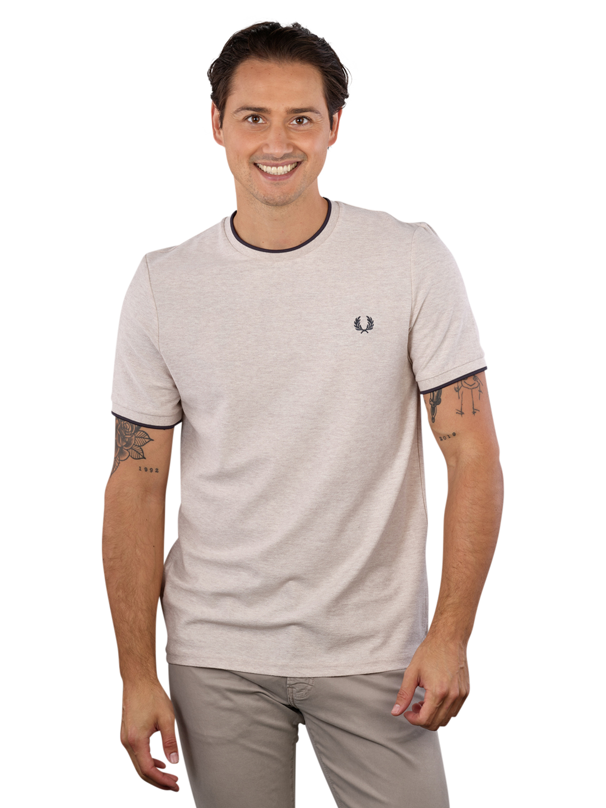 The Fred Perry Crepe Piquet T-shirt stands out with its beige colour and stylish round neck collar. It is specially designed for men and belongs to the T-shirt category. Made from 100% cotton, it is extremely comfortable to wear. Care instructions: Normal wash cycle at 40 degrees Celsius, do not bleach. This short-sleeved T-shirt is ideal for a casual yet elegant look.