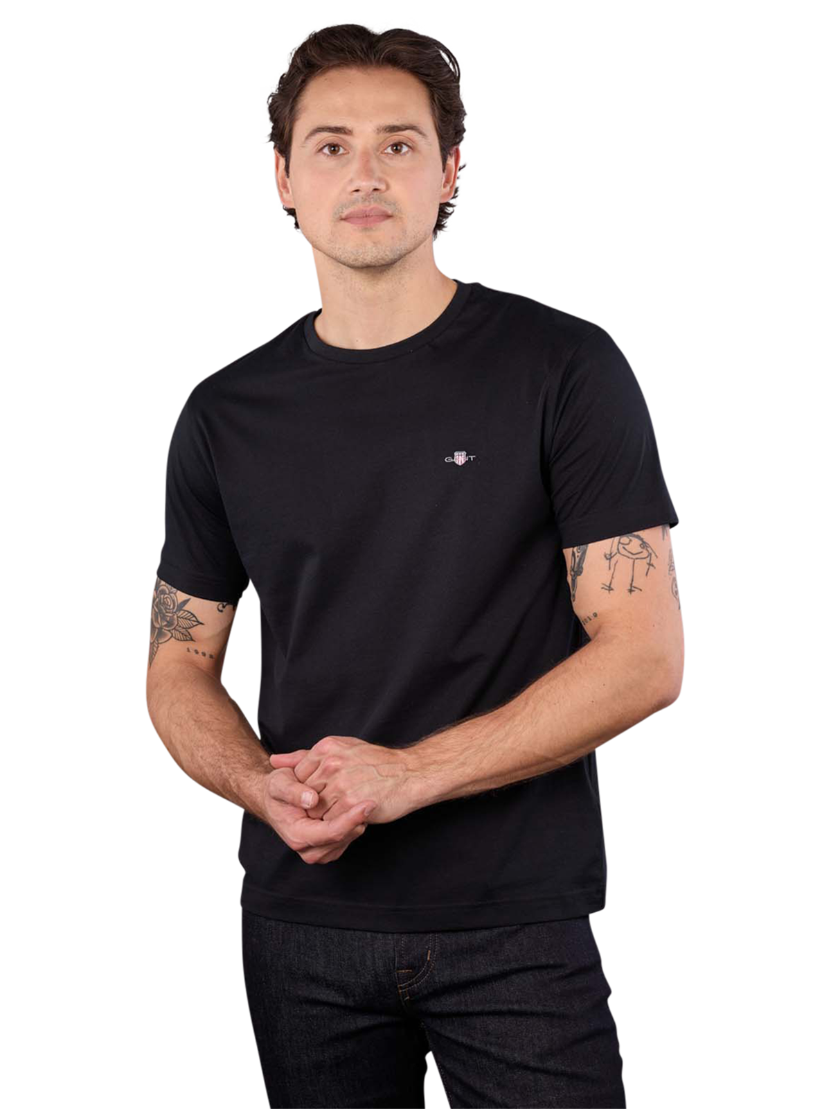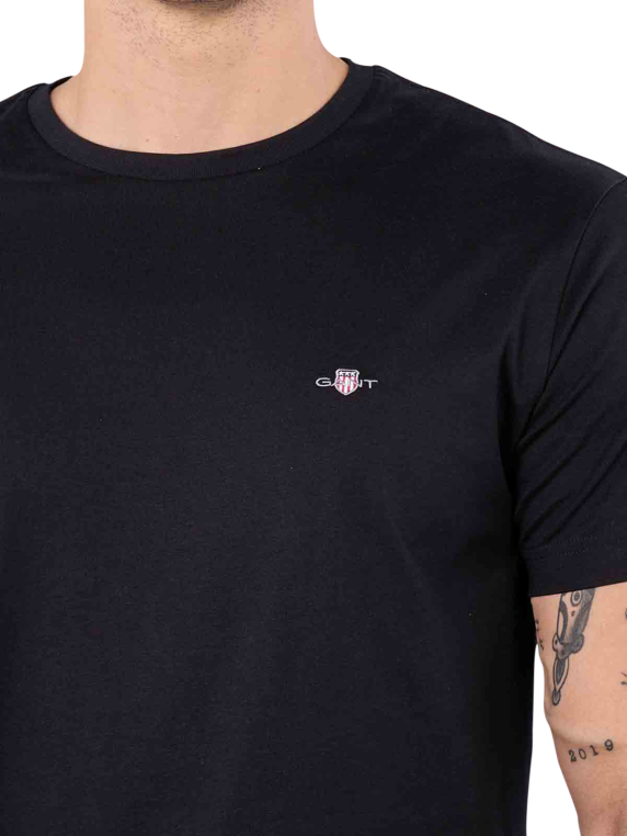 The Gant Regular Shield T-shirt for men in black impresses with its simple elegance and high level of comfort. The classic round neck collar and 100% cotton feel pleasant against the skin. Ideal for everyday wear and versatile combinations. Easy-care at 40°C on a normal wash cycle, do not bleach. An essential basic for any wardrobe that combines style and functionality.